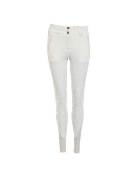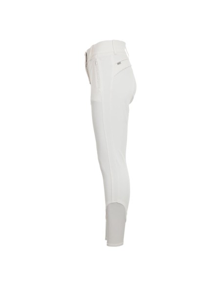 The stylish glittery details and the beautiful high waist of these breeches will make you look gorgeous. The two hidden zipper pockets in front are decorated with shiny imitation diamonds alternated with decorative silver stitching. The same pattern of stitching and diamonds is also featured at the back yoke and the fake pocket flaps. Enough Bling without overdoing it! The breeches are made of Aqua-X, a technical fabric that has a high absorbency, dries fast and helps to regulate body temperature.