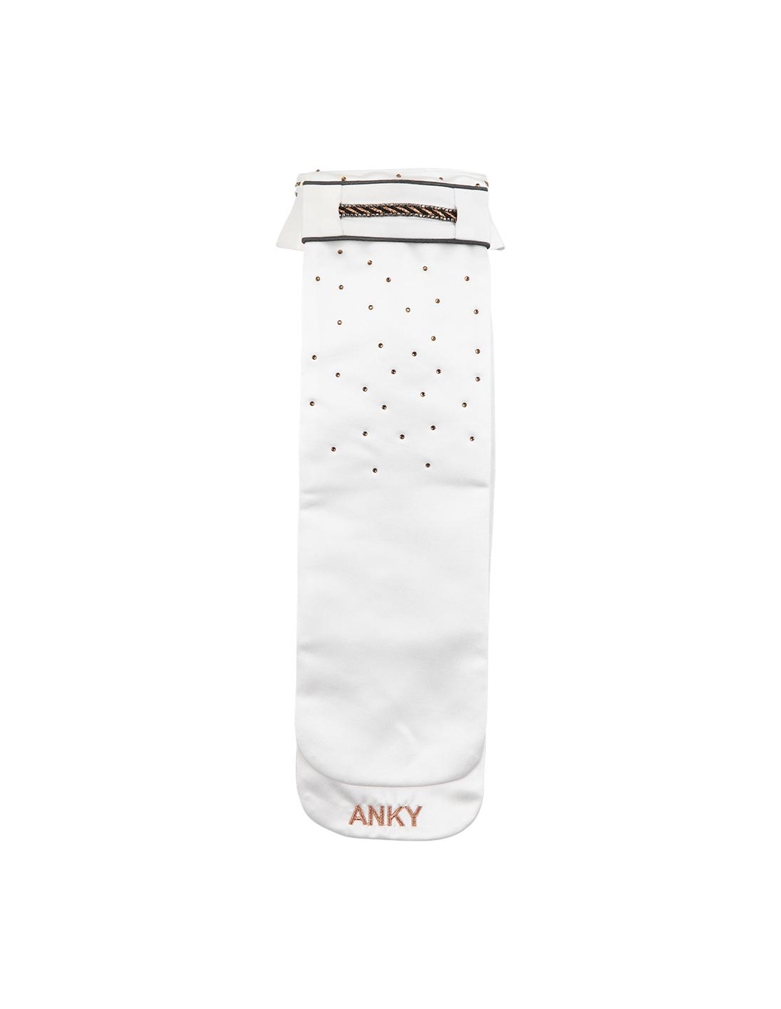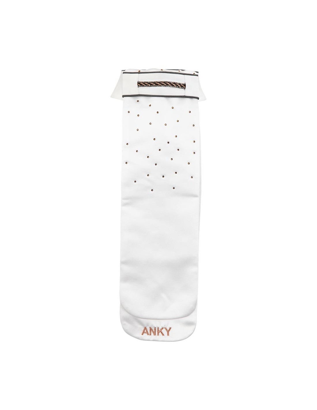 One stock tie with no less than eight wearing options! With this stock tie you can make your outfit as neutral or striking as you want it. The collar is detachable so that you can provide the plastron with the plain collar or the collar decorated with rhinestones. In addition, you have the option to turn the plastron, so that you also have a plain version or a version with rhinestones.