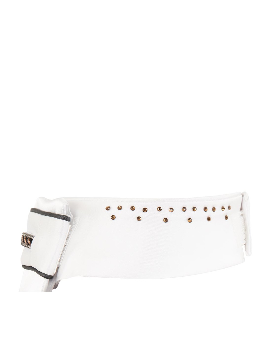 The plastron is decorated with a strass stone tape, which can be used to pull the flap through for a 'puff' effect. You will receive this plastron including accompanying collars, a laundry bag and an information sheet with the wearing options.