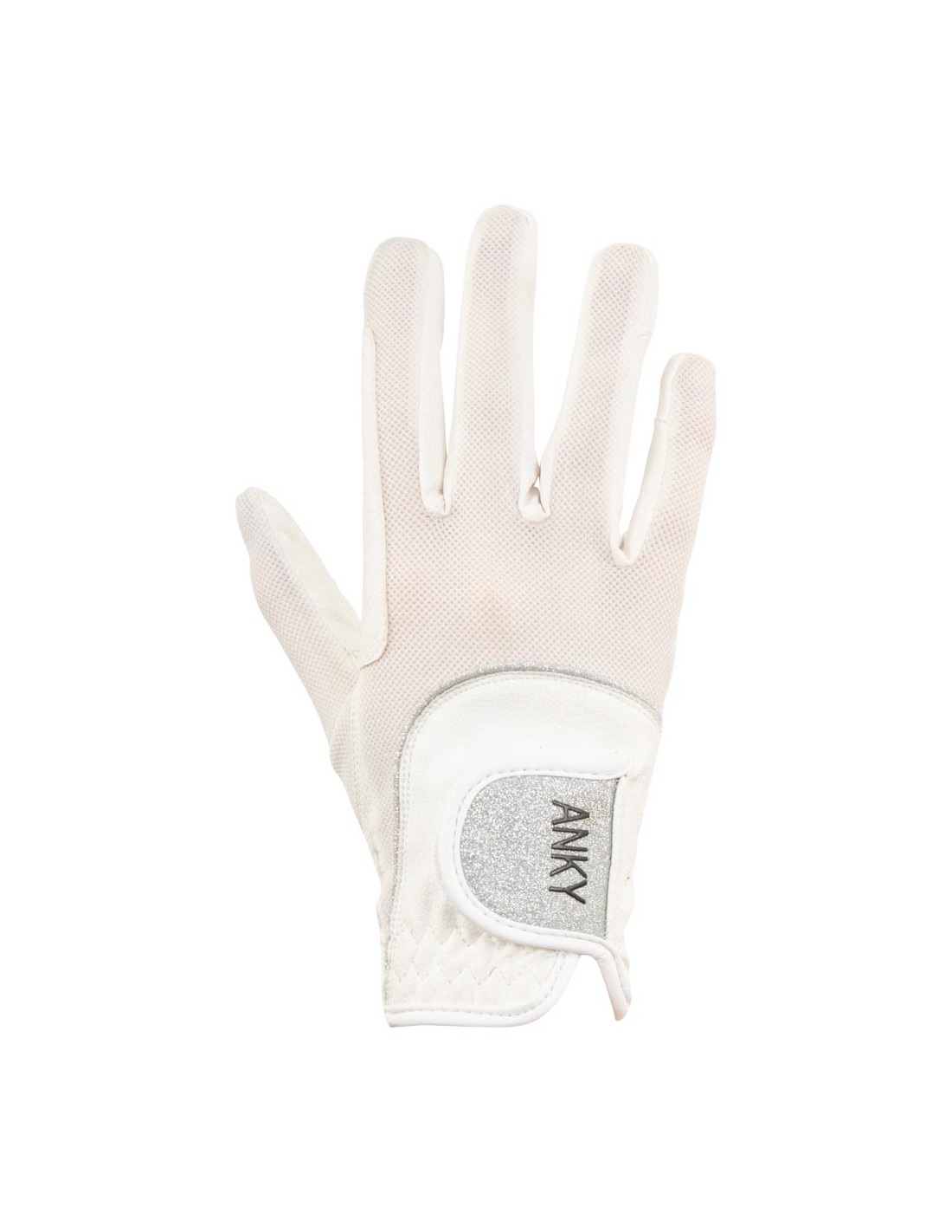 These ANKY® technical gloves are made of breathable mesh material and stylishly printed synthetic leather. The elastic mesh and elasticated wrist provide a good fit and the rein reinforcement provides more grip on the reins. The touchscreen material on the thumb and index finger and the glitter material finish make this glove a beautiful eye-catcher during a competition.