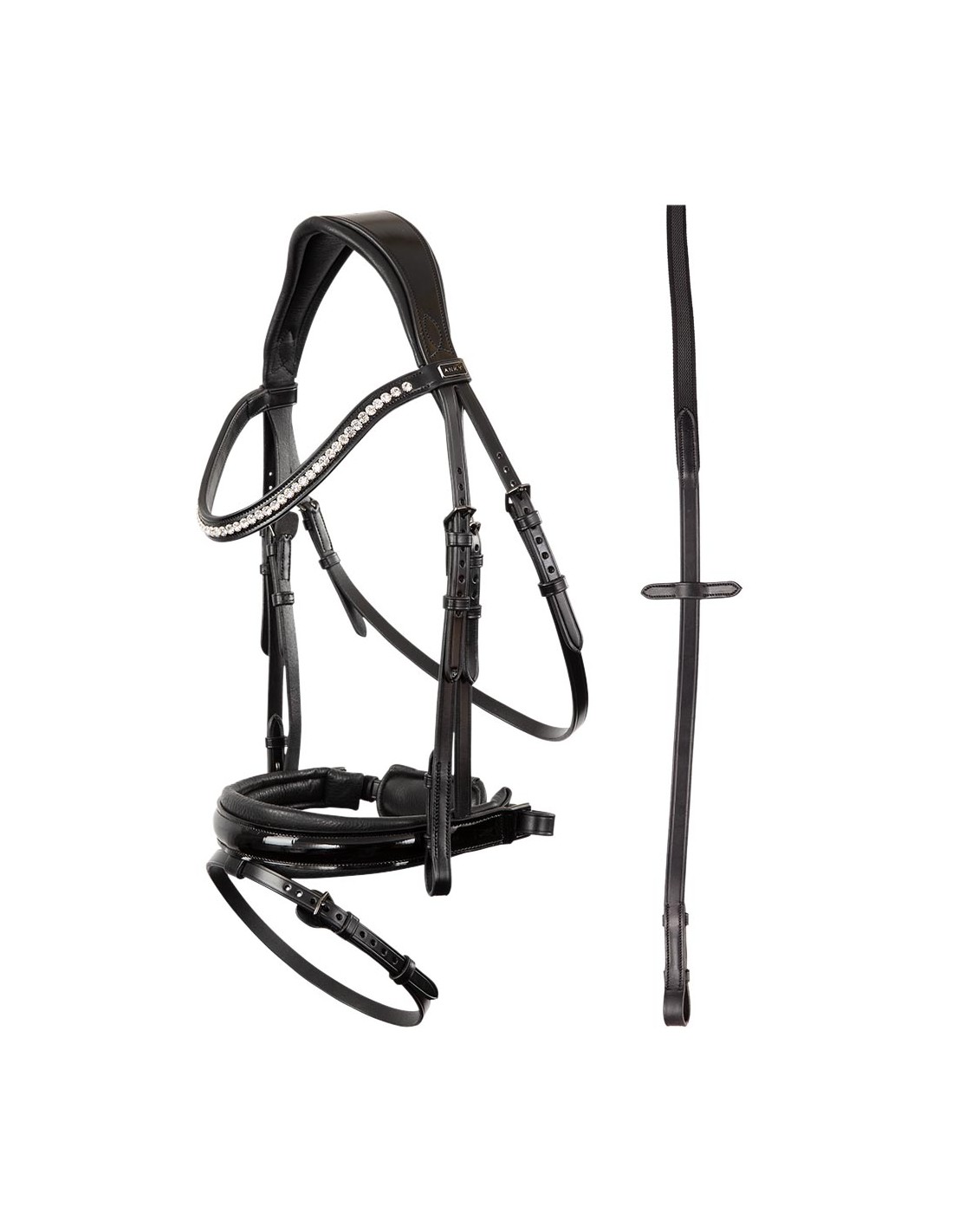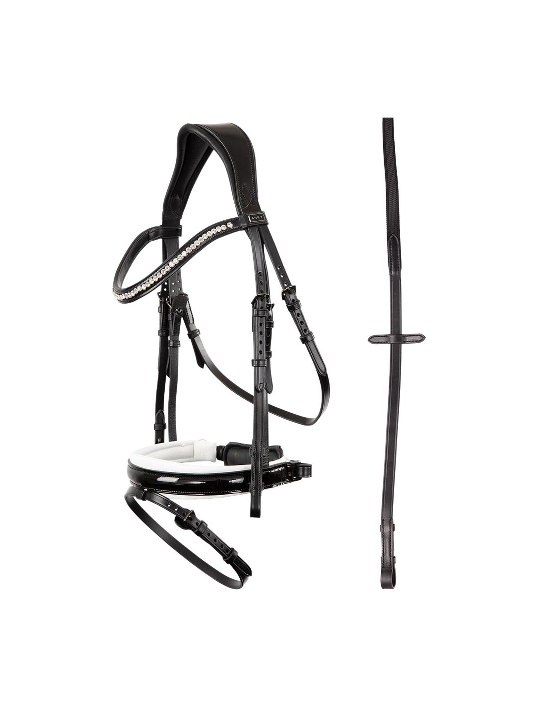 This comfortable ANKY® bridle ATH20005 is anatomically shaped and provided with a soft padding at the noseband and headpiece. The patent leather finish on the noseband, the shiny Stellux™ imitation diamonds in the browband and the gun metal buckles complete this bridle in a charming way.