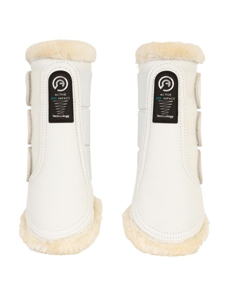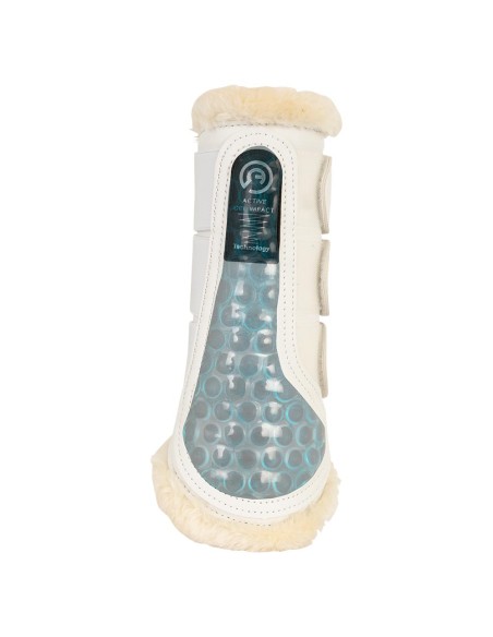 These horse boots stand out because of the technical gel filling under the strike pad and the oval technical gel area on the inside for extra good shock absorption. The gel also has the advantage that it ensures good pressure distribution and moulds itself to the horse's leg for an optimal fit. The inside is lined with breathable, perforated neoprene and the gel part is covered with mesh material for optimal air permeability. The gel and the artificial fur edge offer your horse optimal comfort and prevent chafing. The artificial fur is 100% animal-friendly with the same qualities as real fur.