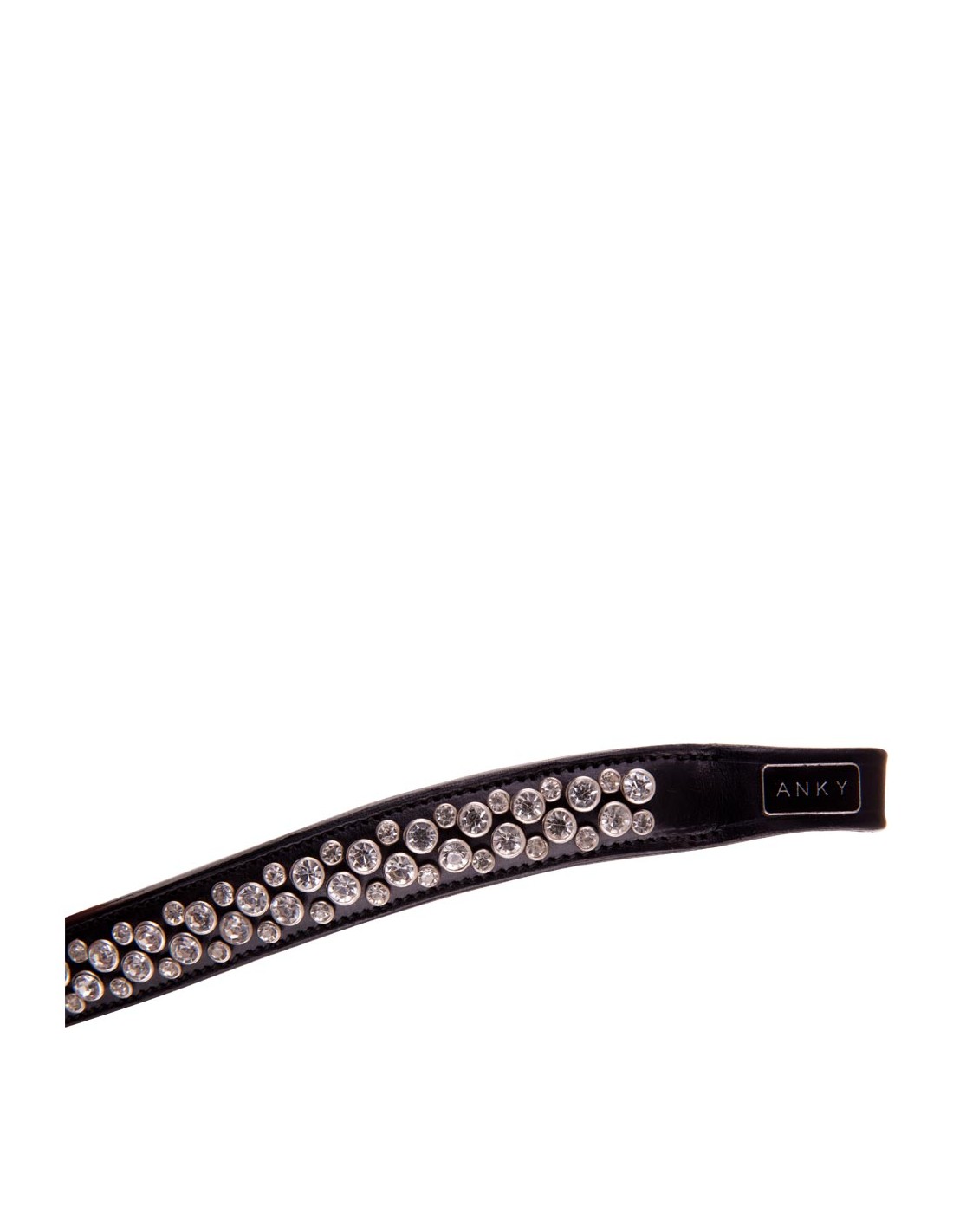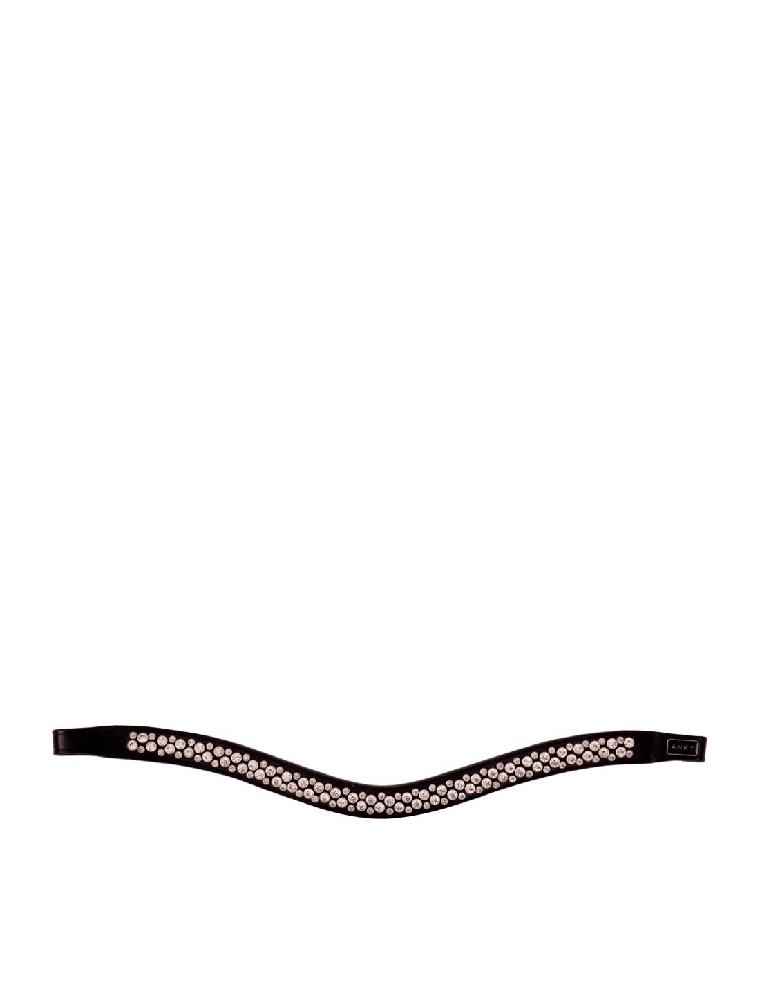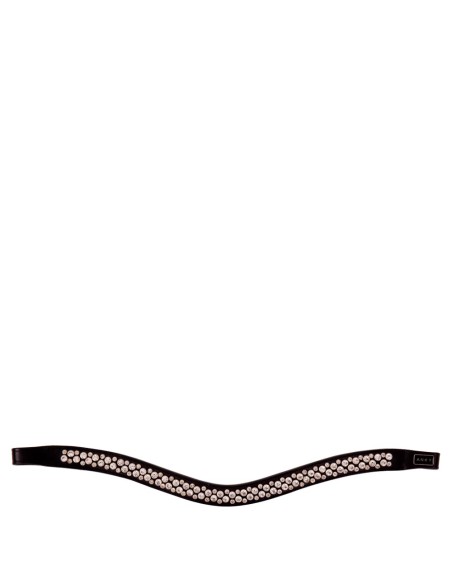 This curved browband is fully encrusted with shiny synthetic gemstones in two different sizes, which are set in firmly-fixed rivets. The browband has soft leather facing.