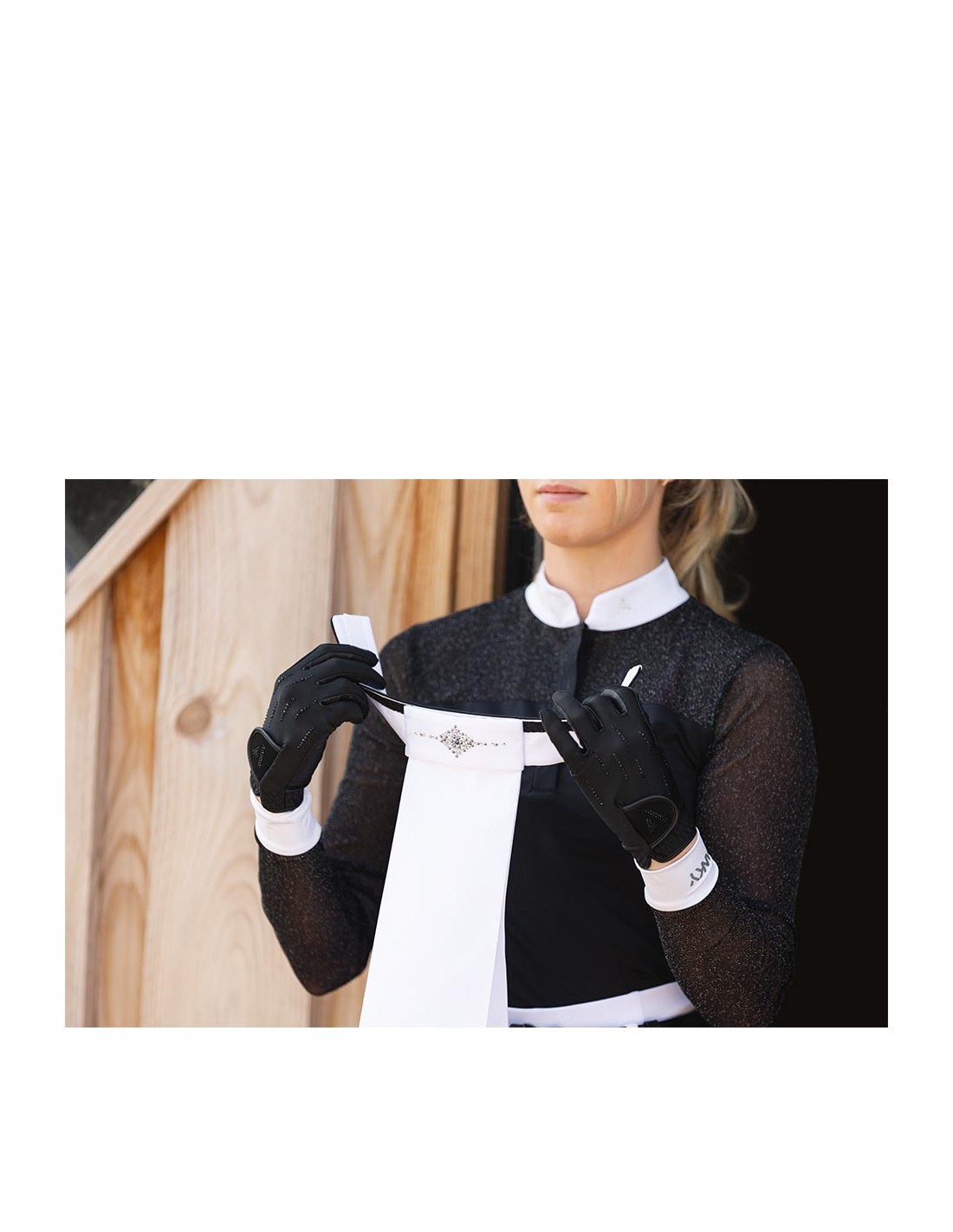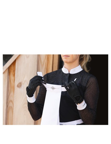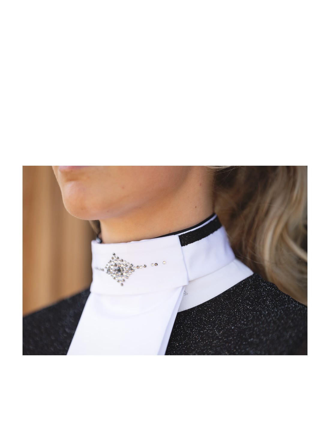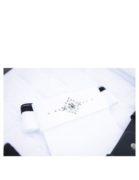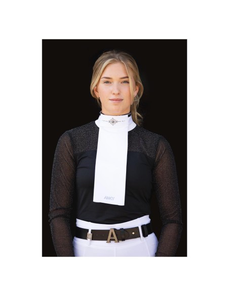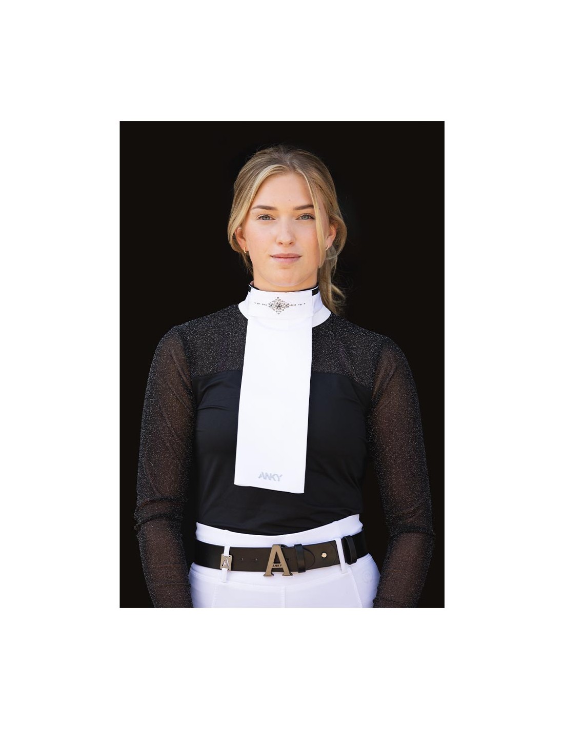 The long front flap of this luxury plastron is adjustable so you can wear the plastron both high and low. Both the front and the collar have shiny rhinestones for an extra chic look. The front of the stock tie has a playful pattern of large and small rhinestones in different colours. The collar is finished with a piping of small stones with shiny sugar stones in between that give an extra sparkling effect. The silicone ANKY® logo on the bottom completes the plastron in a stylish way.