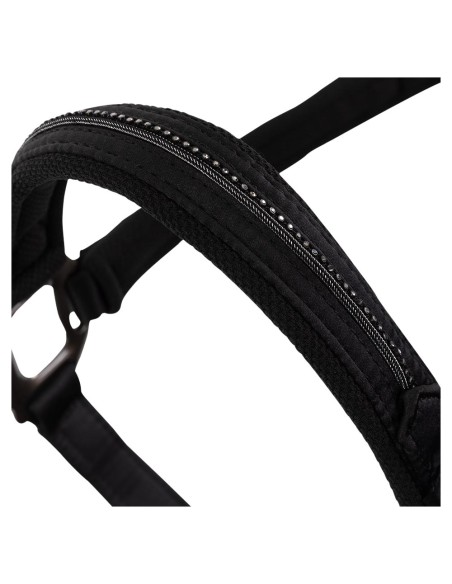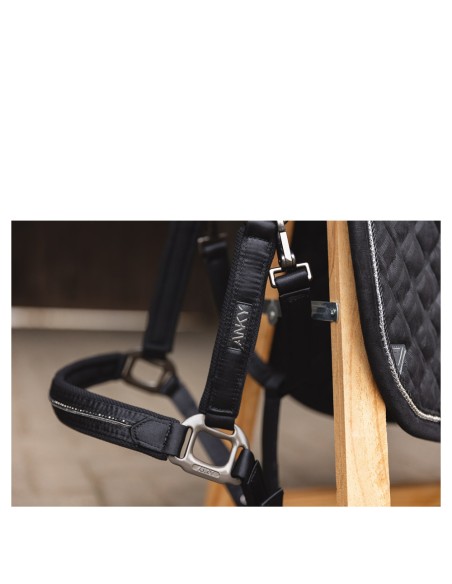 This chic halter contains subtle, elegant elements and is in addition incredibly comfortable! The polyester straps are covered with a sturdy satin fabric that gives the halter a nice and soft feel. The mesh lining on the inside of the headpiece, noseband and cheekpieces has a breathable and moisture-wicking effect for optimal comfort for the horse.