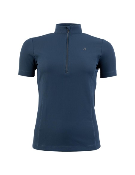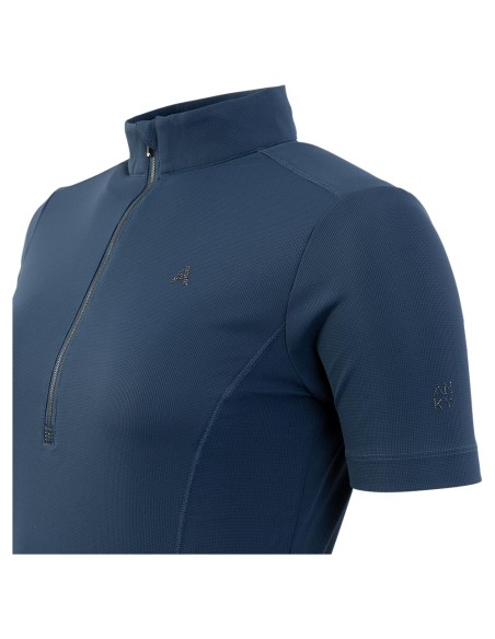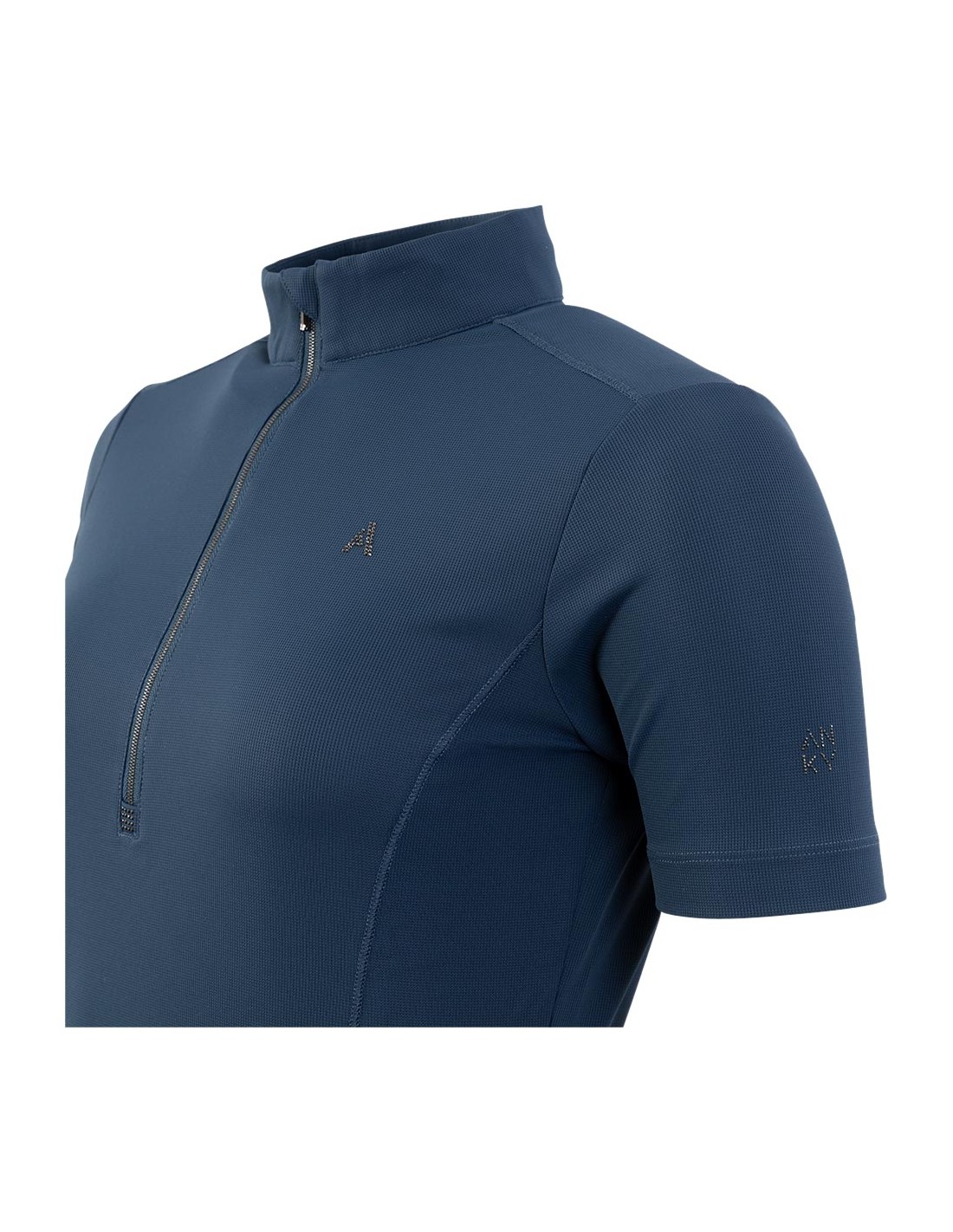 Thanks to its breathable, moisture-wicking and quick-drying properties, this shirt ensures optimal wearing comfort during training and competitions. The thin gun metal-coloured zipper features a chin protector and a rhinestone pattern at the bottom. The logo of rhinestones on the chest completes the shirt in a stylish way.