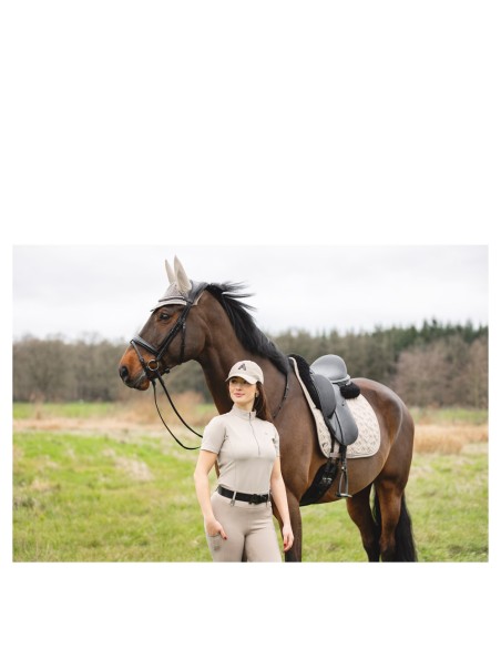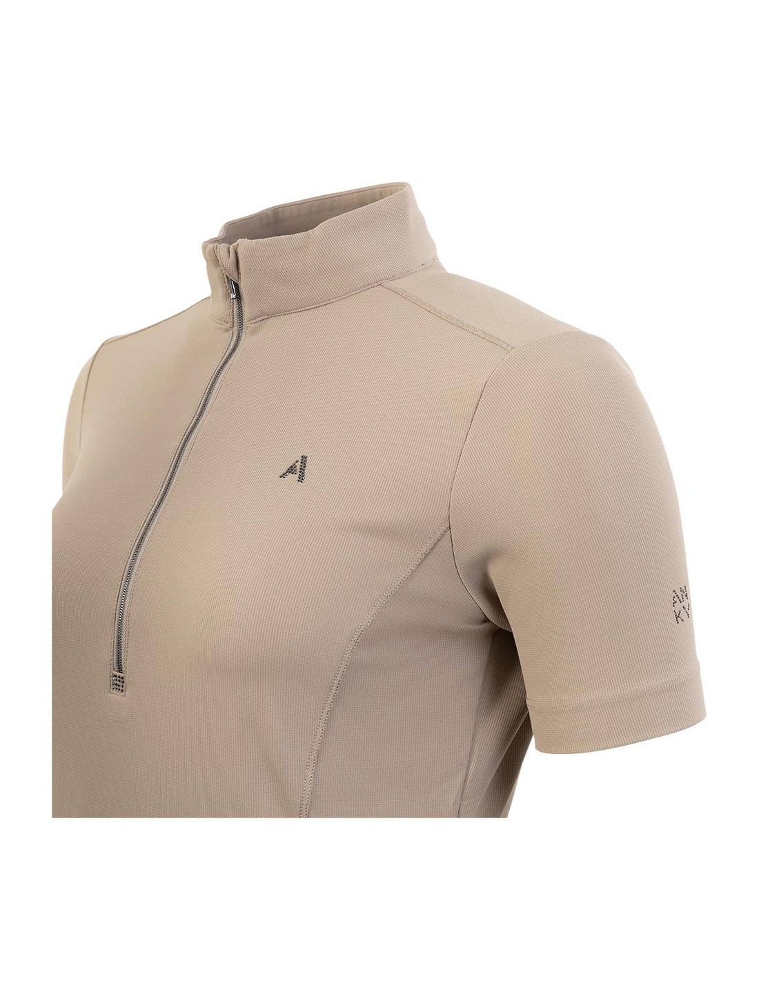 Thanks to its breathable, moisture-wicking and quick-drying properties, this shirt ensures optimal wearing comfort during training and competitions. The thin gun metal-coloured zipper features a chin protector and a rhinestone pattern at the bottom. The logo of rhinestones on the chest completes the shirt in a stylish way.