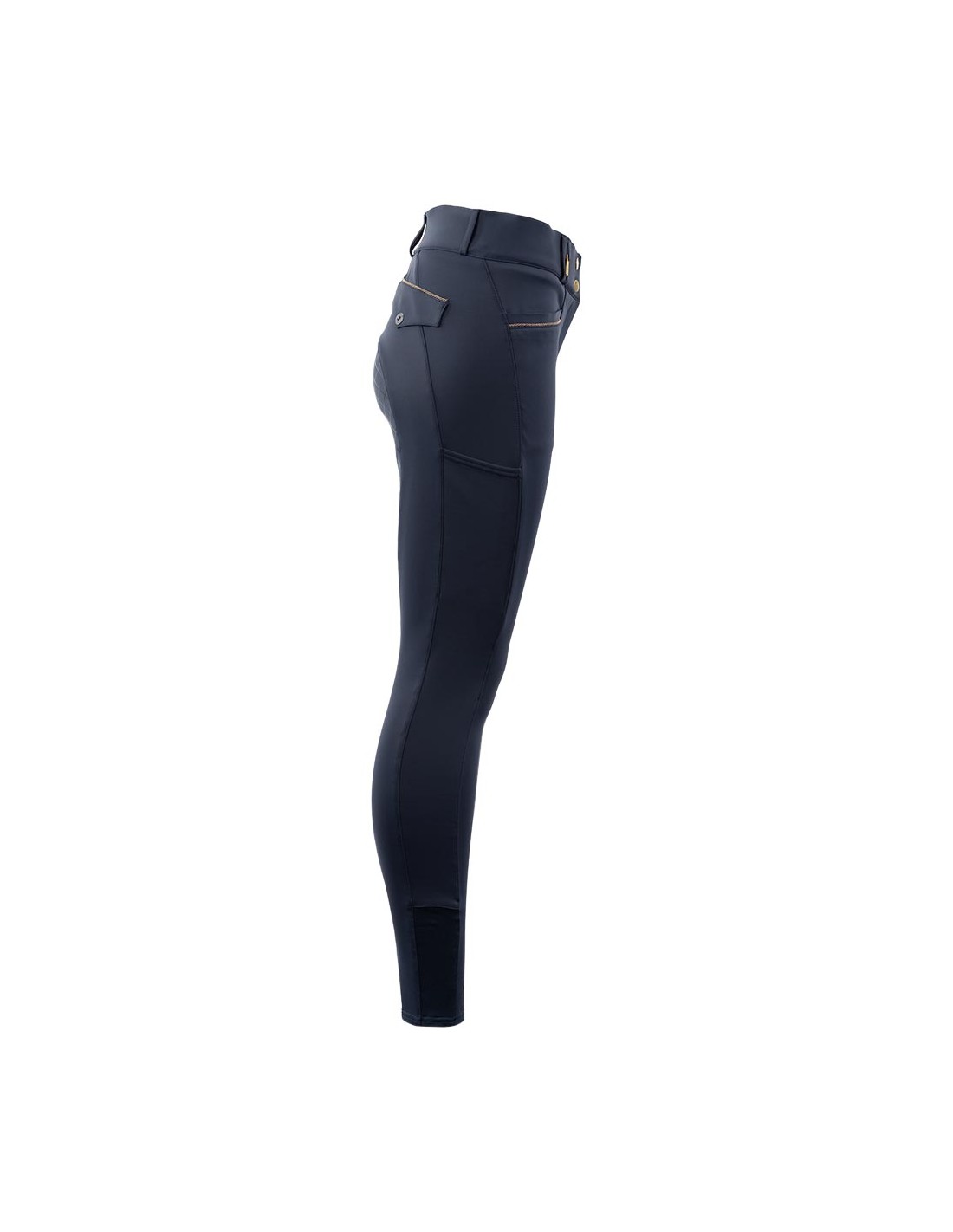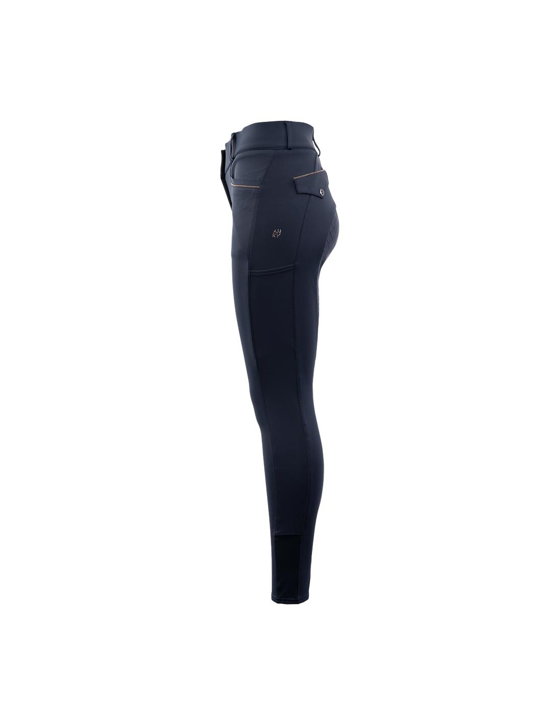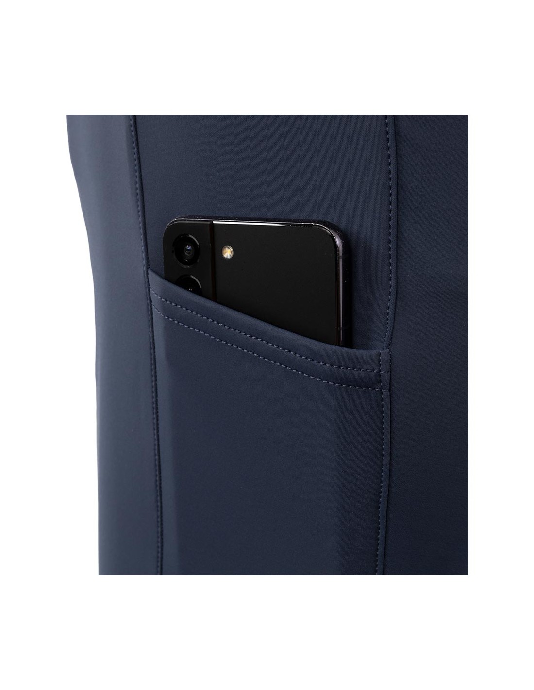 These super comfortable and stylish breeches are made of a soft fabric with many pleasant advantages that make the fit and wearing comfort optimal. The fabric is soft, extremely stretchy thanks to 4-way stretch, breathable, moisture-regulating, quick-drying and shape-retaining. The breeches are equipped with front pockets finished with a subtle cord piping. Deep smartphone pockets can be found on both sides. On the back there are two fake flap pockets that give the breeches an elegant touch. The silicone seat maximises the stability on the saddle.