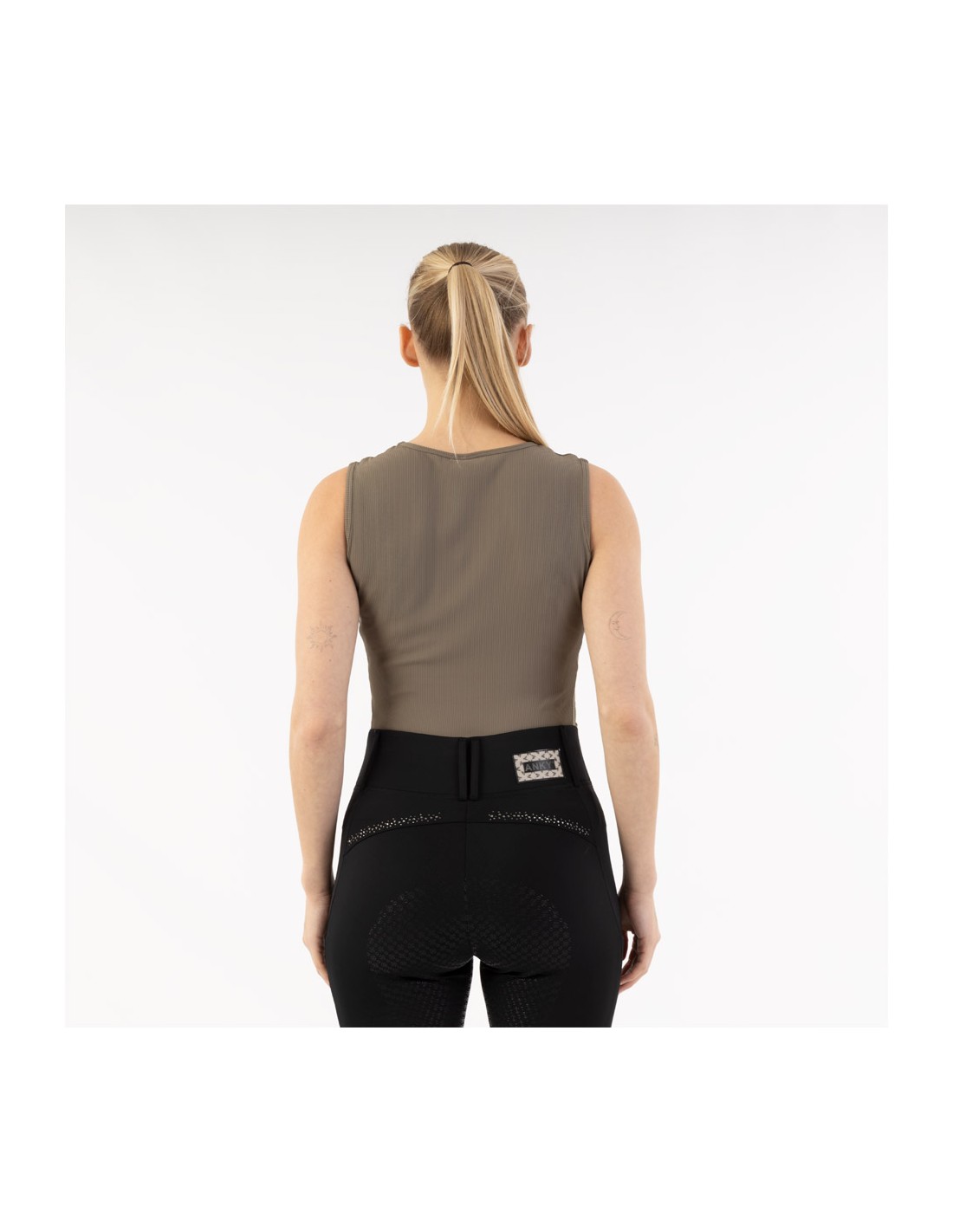 • Ribbed tape in tone along neck and armhole