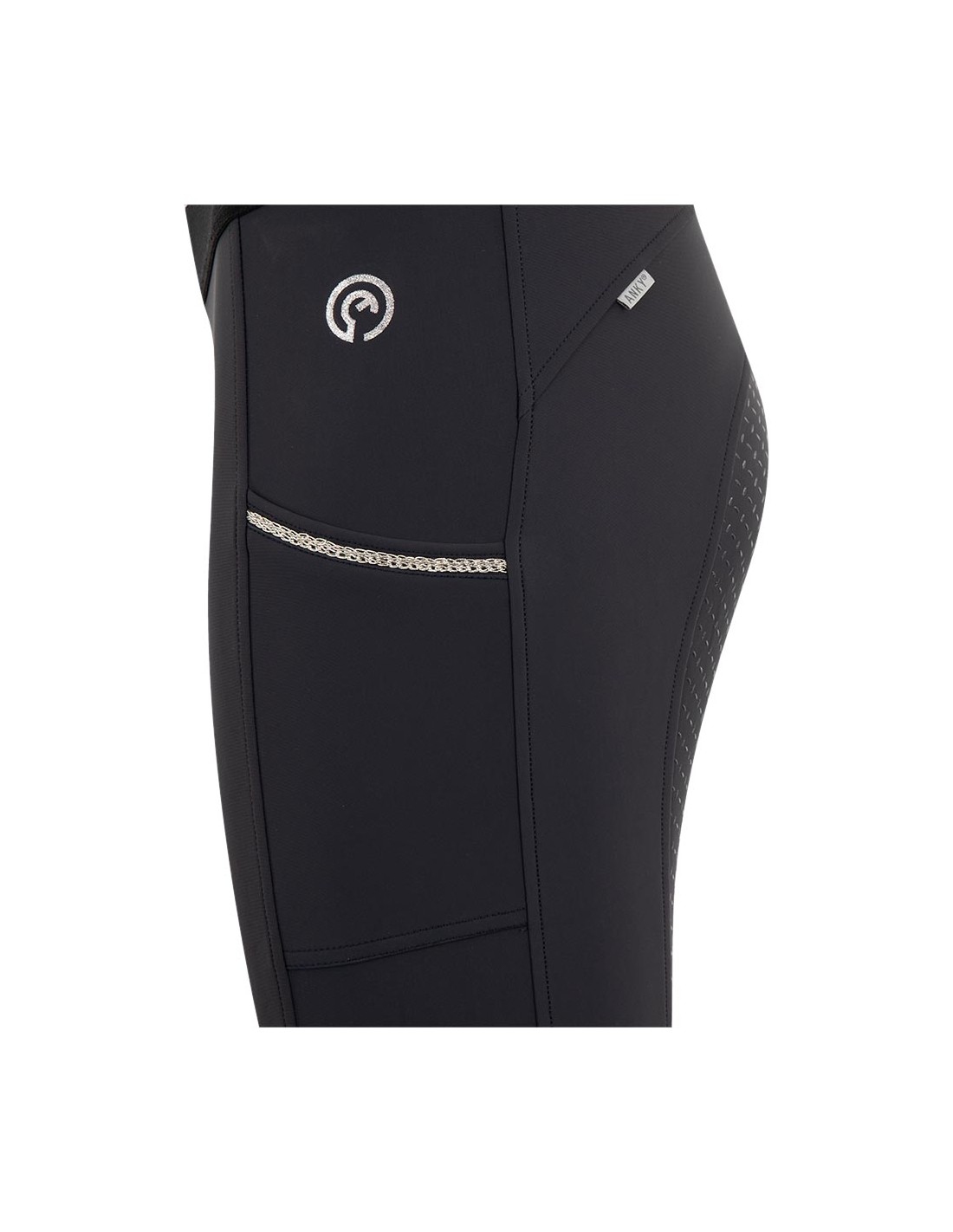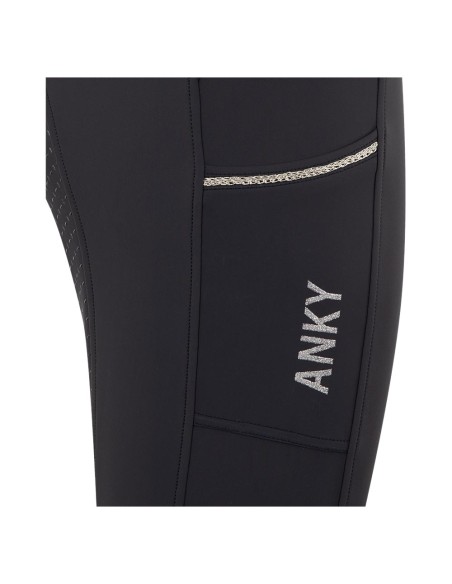 Deze ANKY wedstrijdlegging heeft een ideale pasvorm die goed van pas komt tijdens wedstrijden en trainingen. De elastische tailleband is afgewerkt met twee zilveren sierstrepen en de ruime zijzakken zijn gedecoreerd met zilveren gevlochten tape.