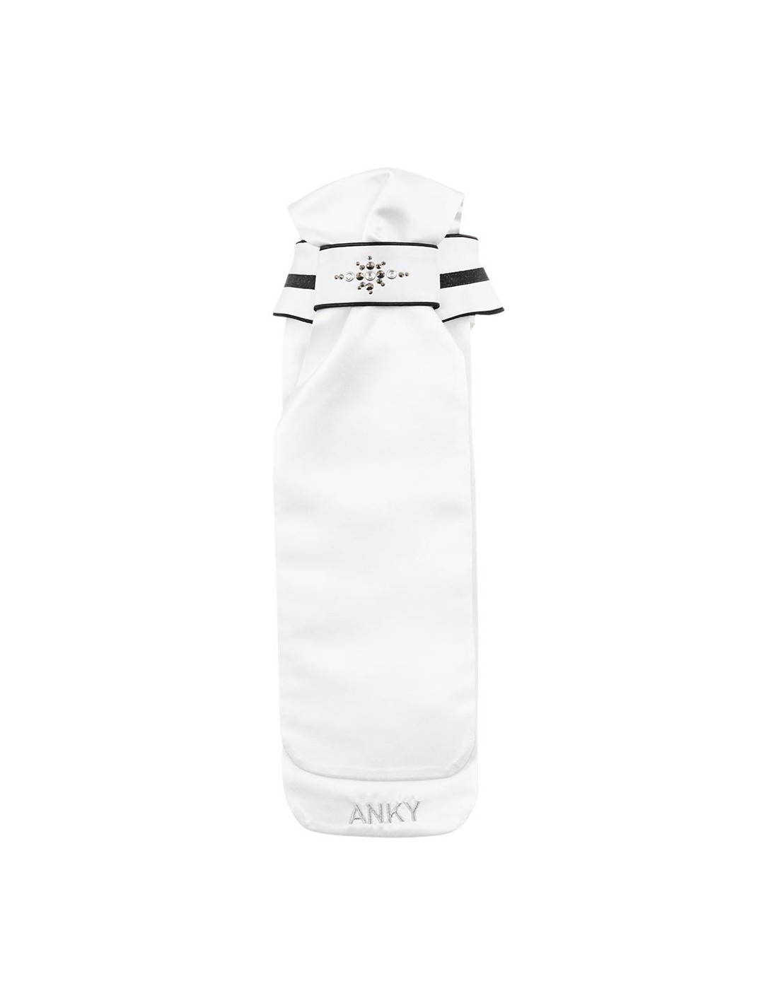 Deze luxe plastron met geplooid model is afgewerkt met contrastbiezen in het zwart, navy of zilver. Op het voorstuk bevindt zich een sierlijk patroon van strass steentjes in verschillende groottes, matchend met de kleur van de contrastbiezen. De kraag is voorzien van een glanzende contrastbies en op de onderzijde van de plastron is het zilveren, geborduurde logo te vinden. Wordt geleverd met waszak.