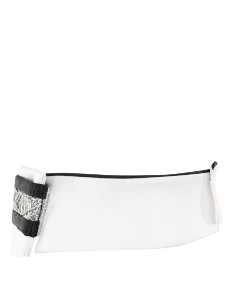 De plastron is gemakkelijk om de boord van het wedstrijdshirt of de wedstrijdblouse te bevestigen door middel van de klittenbandsluiting aan de achterkant. Wordt geleverd met een waszak.