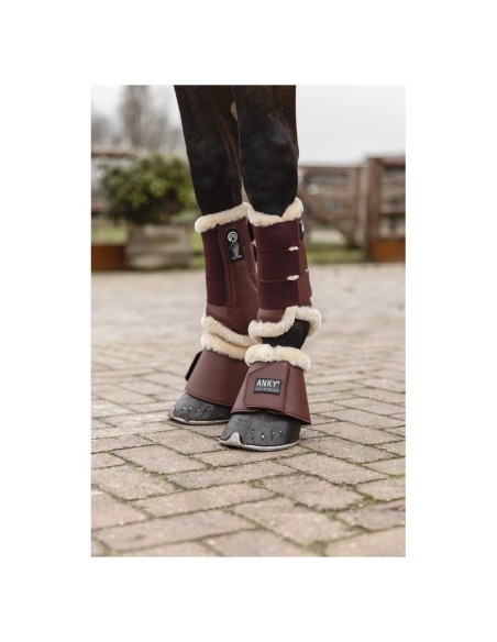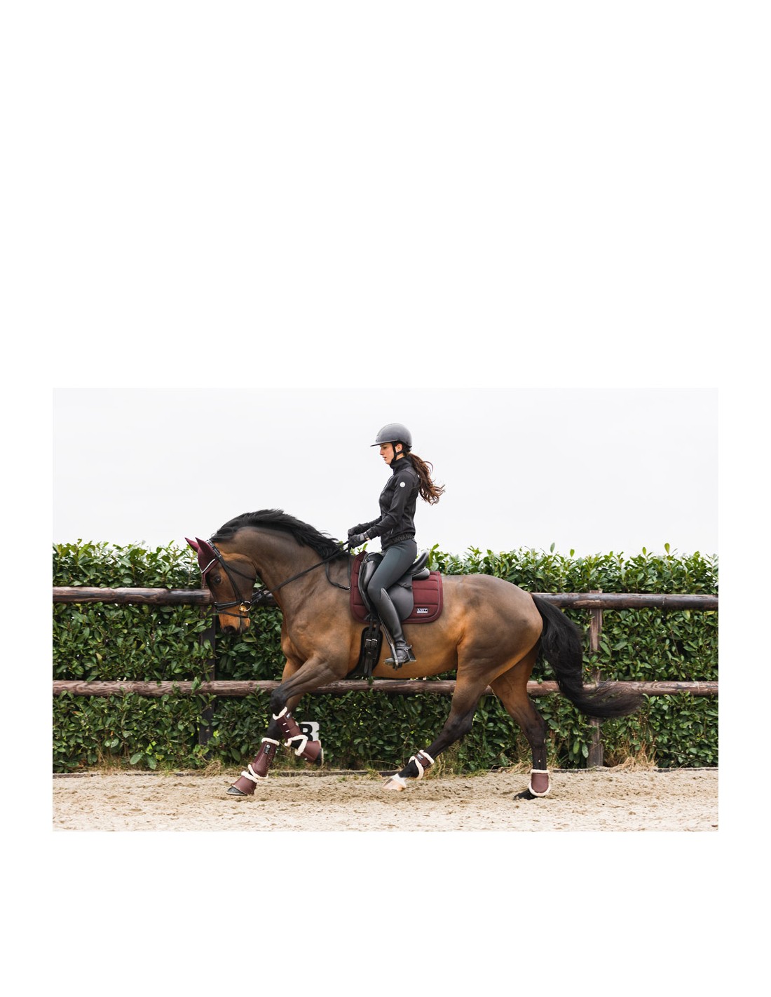 Deze beenbeschermers vallen op door de technische gelvulling onder het strijkgedeelte en het ovale technische gelgedeelte aan de binnenzijde voor een extra goede schokdemping. De gel heeft daarnaast ook als voordeel dat het zorgt voor een goede drukverdeling en zich vormt naar het paardenbeen voor een optimale pasvorm. De binnenzijde is gevoerd met ademend, geperforeerd neopreen en het gelgedeelte is bedekt met mesh-materiaal voor een optimale luchtdoorlatendheid. De gel en de rand van kunstbont bieden je paard optimaal comfort en voorkomen schuurplekken. Het kunstbont is 100% diervriendelijk met dezelfde kwaliteiten als echt bont.