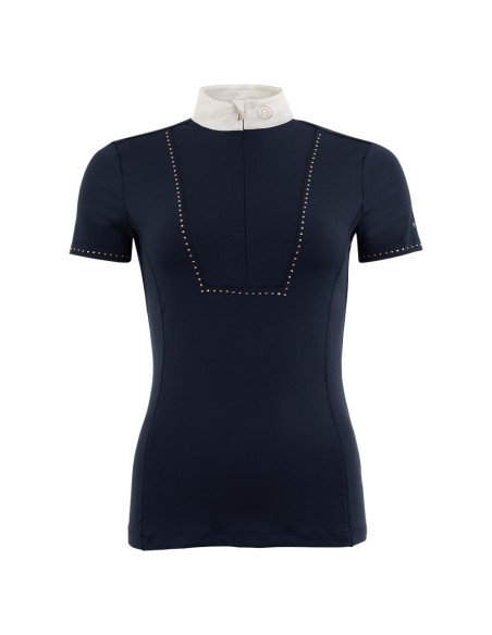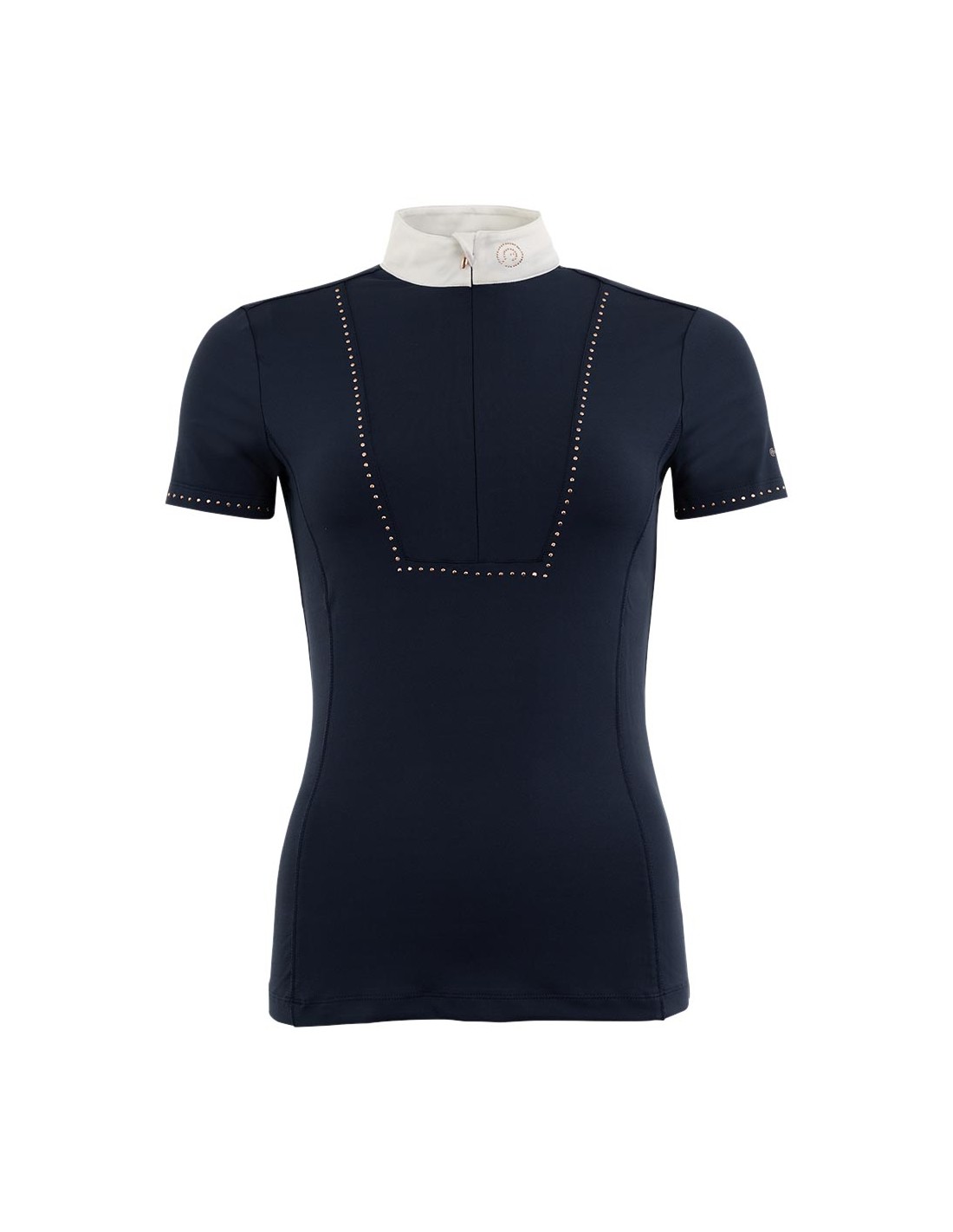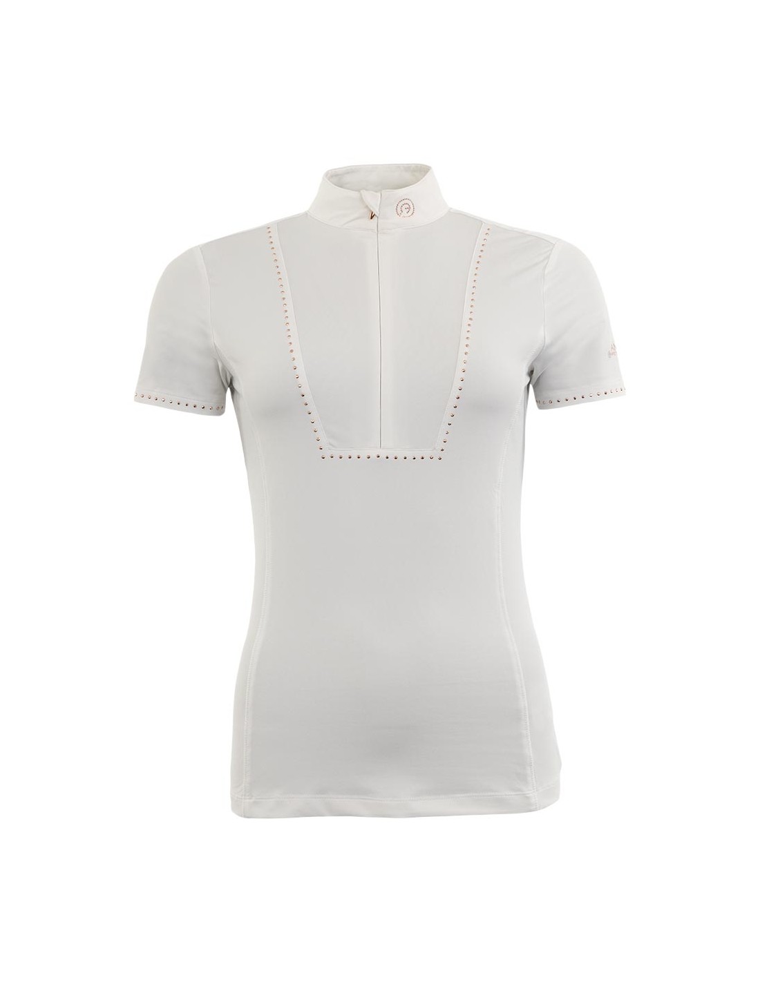 Het shortsleeve wedstrijdshirt Cupreous is afgewerkt met koperkleurige strass-steentjes rondom de mouwen en op de voorzijde. De blinde rits op de voorzijde is voorzien van kinbescherming en op de kraag bevindt zich het logo gemaakt van strass-steentjes. Het shirt is lichtgewicht heeft dankzij de 4-way stretch een mooie pasvorm.