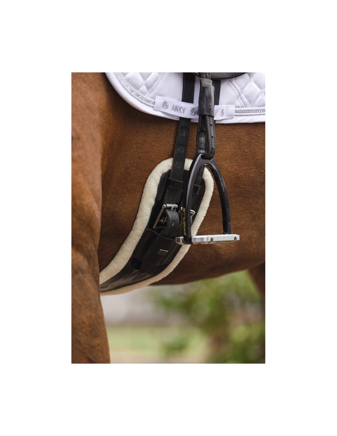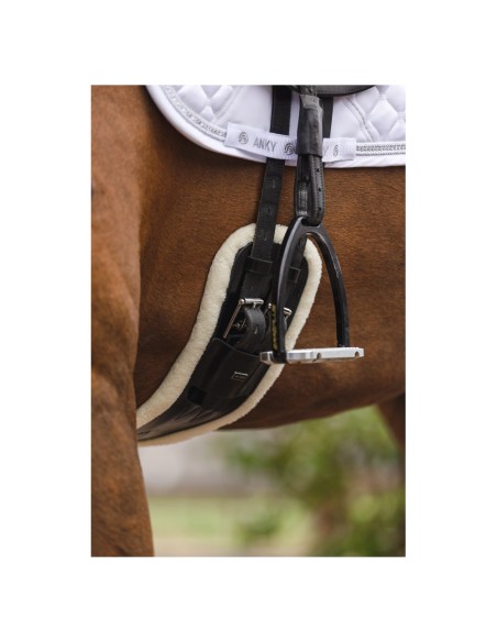 Deze ANKY® dressuursingel is gemaakt van kwalitatief Europees leder dat lang mooi blijft. Het anatomische design het paard optimale bewegingsvrijheid. Het afneembare kunstbont biedt optimaal comfort, verdeelt de druk en voorkomt drukplekken. Bij deze singel worden twee kunstbontjes meegeleverd in de kleuren zwart en naturel.