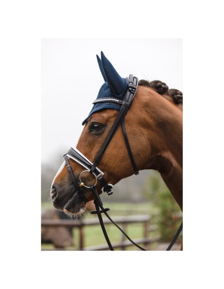 Het hoofdstel is anatomisch gevormd voor extra vrijheid achter de oren van het paard. Het kopstuk is heerlijk zacht onderlegd en gevuld met 10 mm schuim zodat er zo min mogelijk druk op de gevoelige zenuwuiteinden komt te liggen. Ook de neusriem is zacht onderlegd voor optimaal comfort en een goede drukverdeling. De gespen op het kopstuk maken het mogelijk om het hoofdstel naar wens te verstellen.