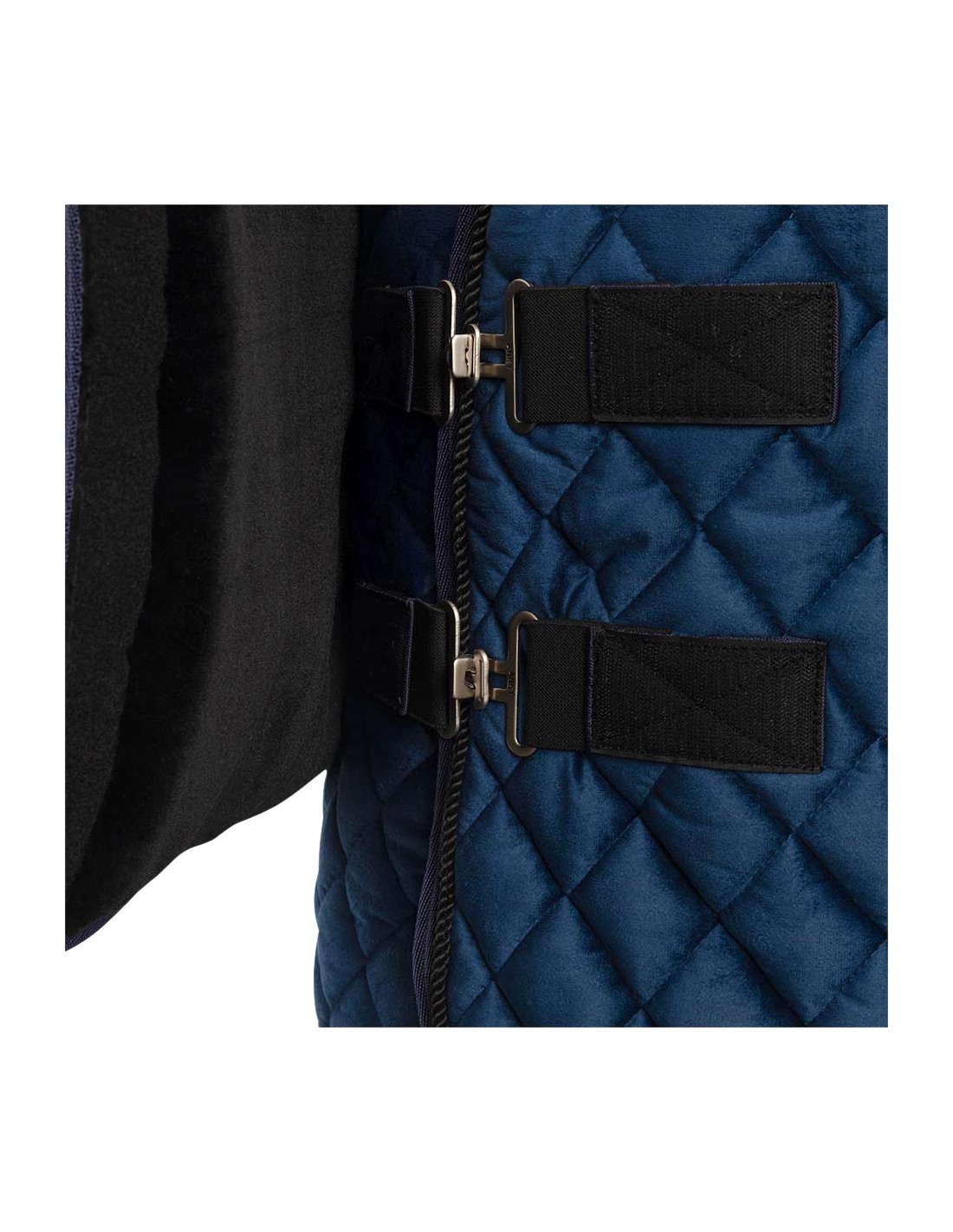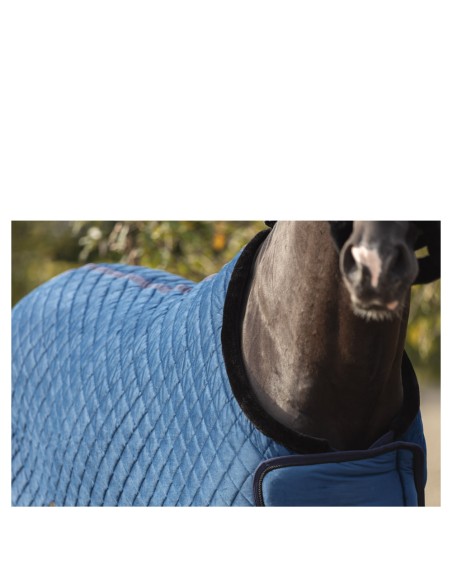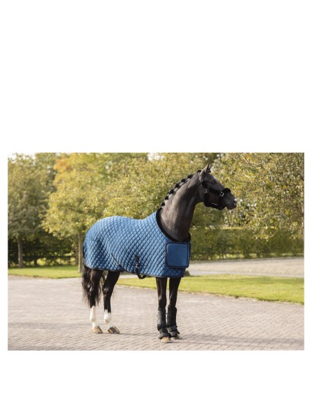 Deze luxe deken is perfect voor tijdens transport, na de training of als showdeken. De zijdezachte buitenzijde is voorzien van een luxe ruitvormige stepping en aan de rand afgewerkt met een gunmetal koord.