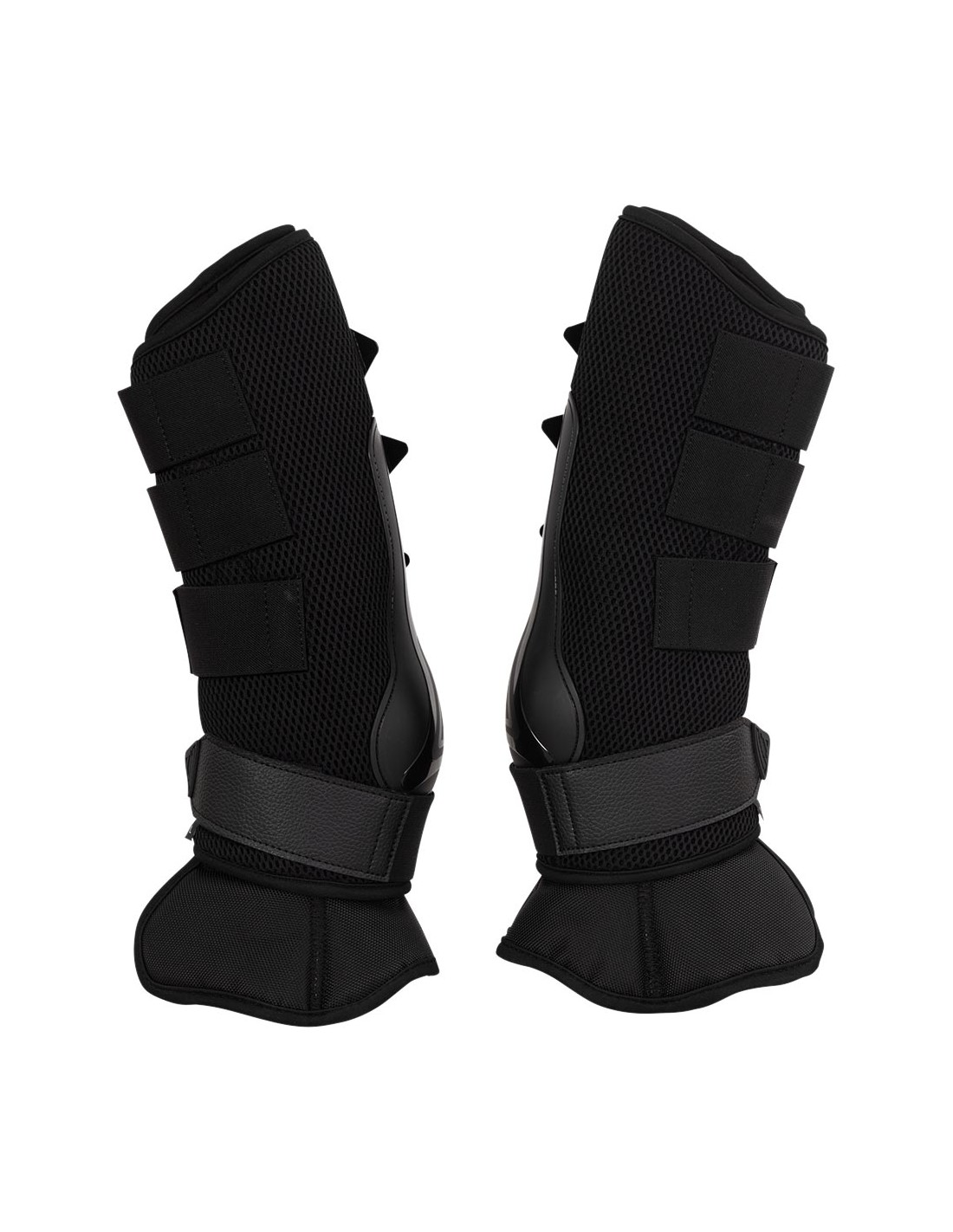 De beschermers zijn gevoerd met lasergesneden neopreen dat zacht aanvoelt op het paardenbeen en de buitenzijde is bedekt met 3D mesh. Op die manier zijn de gehele beschermers op en top ademend, vochtafvoerend en sneldrogend. De onderzijde is van stevig 1200D polyester dat extra bescherming biedt en makkelijk schoon te maken is.
