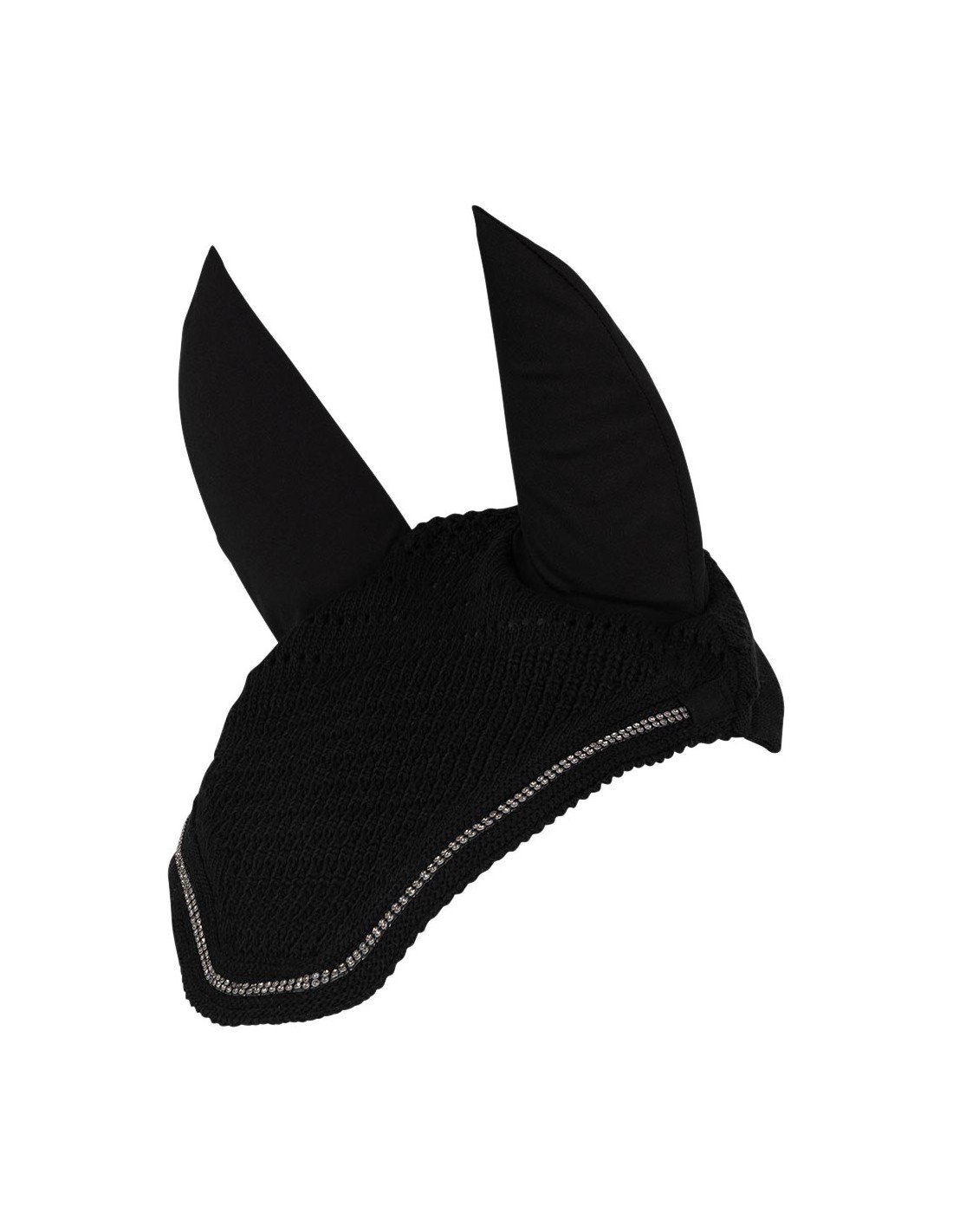 Dit praktische oornetje geeft een subtiele, chique look en geeft de oren van je paard optimale bescherming tegen vliegen en andere insecten. Het gehaakte katoen zorgt voor een goede ventilatie. Het oornetje is elegant langs de rand afgewerkt met twee rijen kleine, glanzende, donkerkleurige strass-steentjes. Maak de set voor je paard compleet met het Nylon Dressuurzadeldek Consensus, art. A16669.