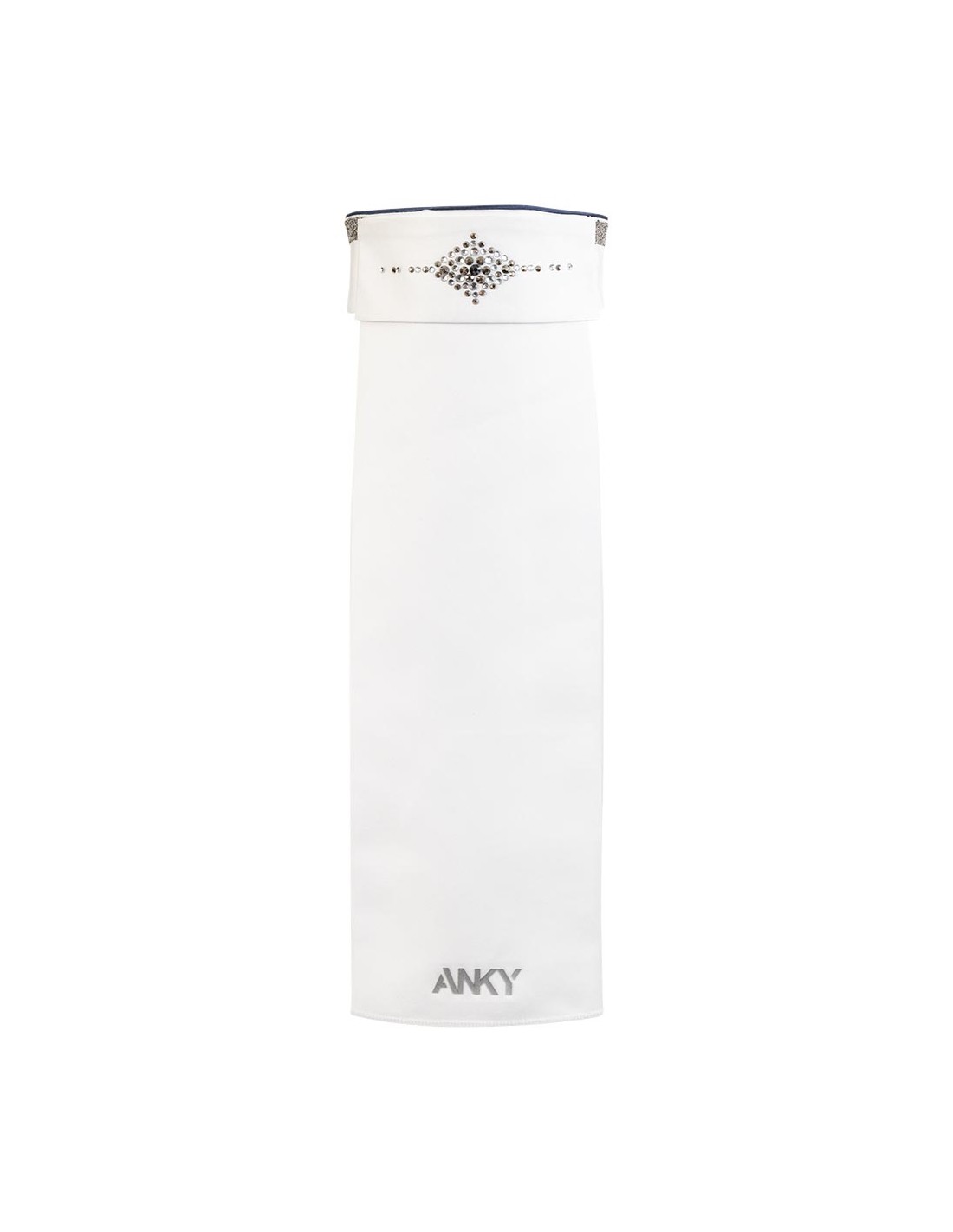 De lange voorflap van deze luxe plastron is verstelbaar zodat je de plastron zowel hoog als laag kunt dragen. Zowel de voorzijde als de kraag zijn voorzien van glanzende steentjes voor een extra chique uitstraling. Op de voorzijde van de plastron bevindt zich een speels patroon van grote en kleine strass-steentjes in verschillende kleuren. De kraag is afgewerkt met een bies van kleine steentjes met glanzende sugar stones ertussen die een extra sprankelend effect geven. Het siliconen ANKY® logo op de onderzijde maakt de plastron op stijlvolle wijze af.