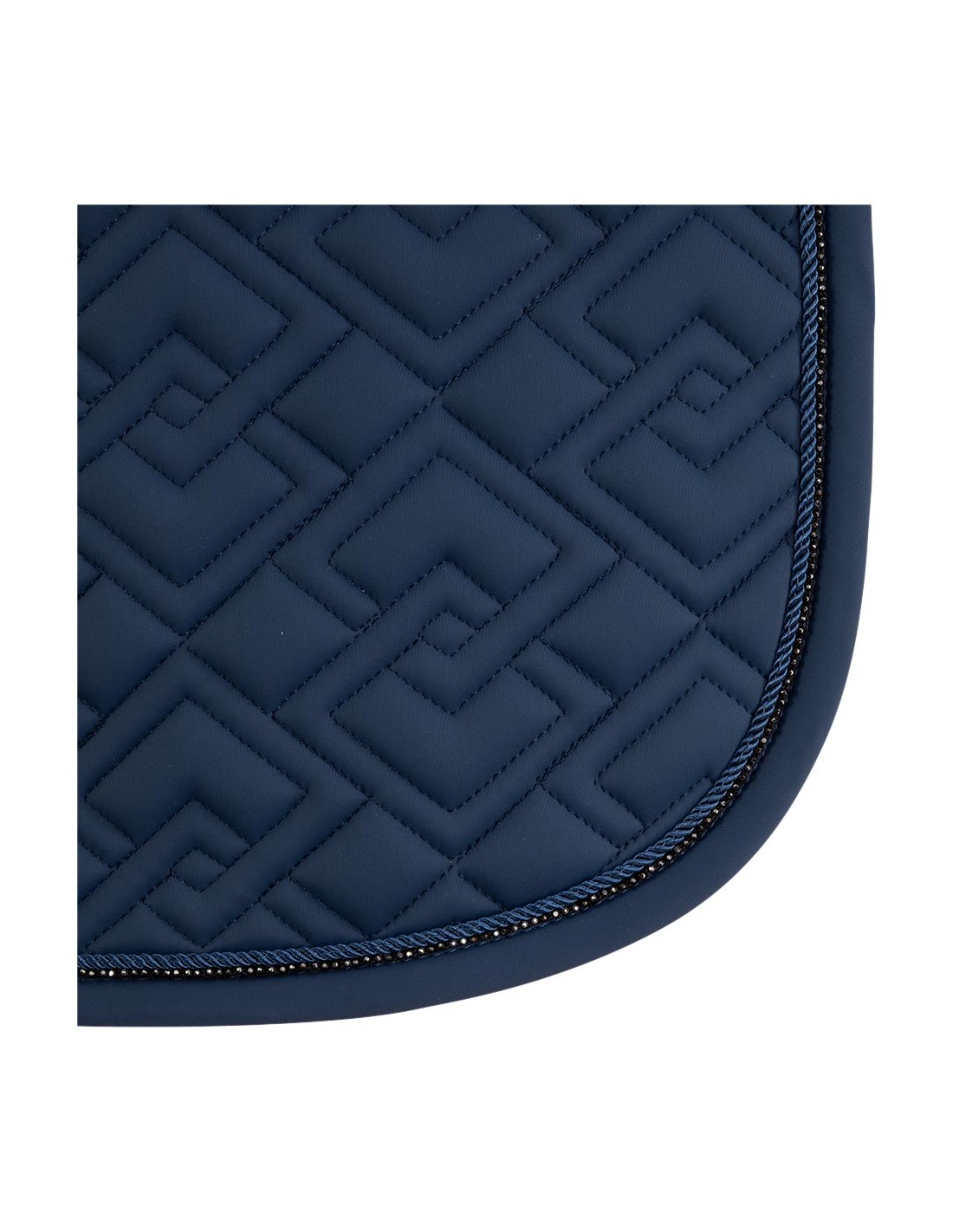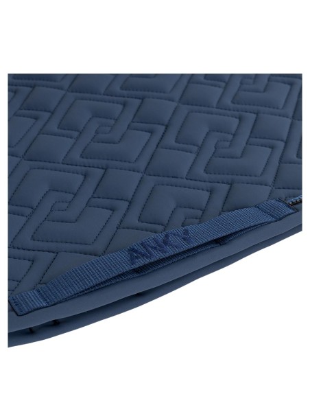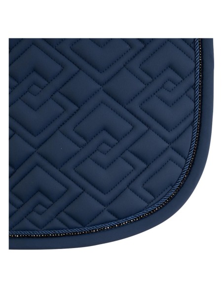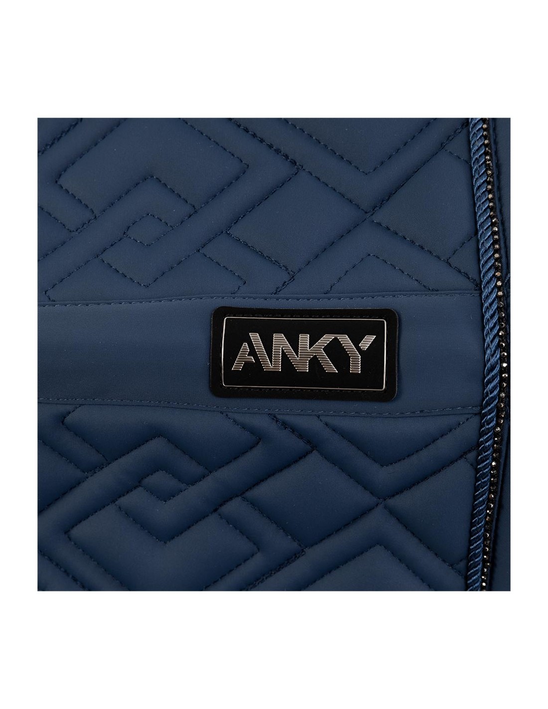 De pad is anatomisch gevormd voor een perfecte ligging op de paardenrug en gevuld met schokabsorberend materiaal. De extra verdikking van schuim aan beide zijden zorgt voor een stevige positie van het zadel. De dubbele singellussen zijn afgewerkt met ANKY®-borduursel. Het zadeldek is op stijlvolle wijze deels afgewerkt met een bies van glanzende, donkerzilveren steentjes en een koordbies.