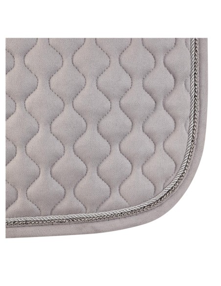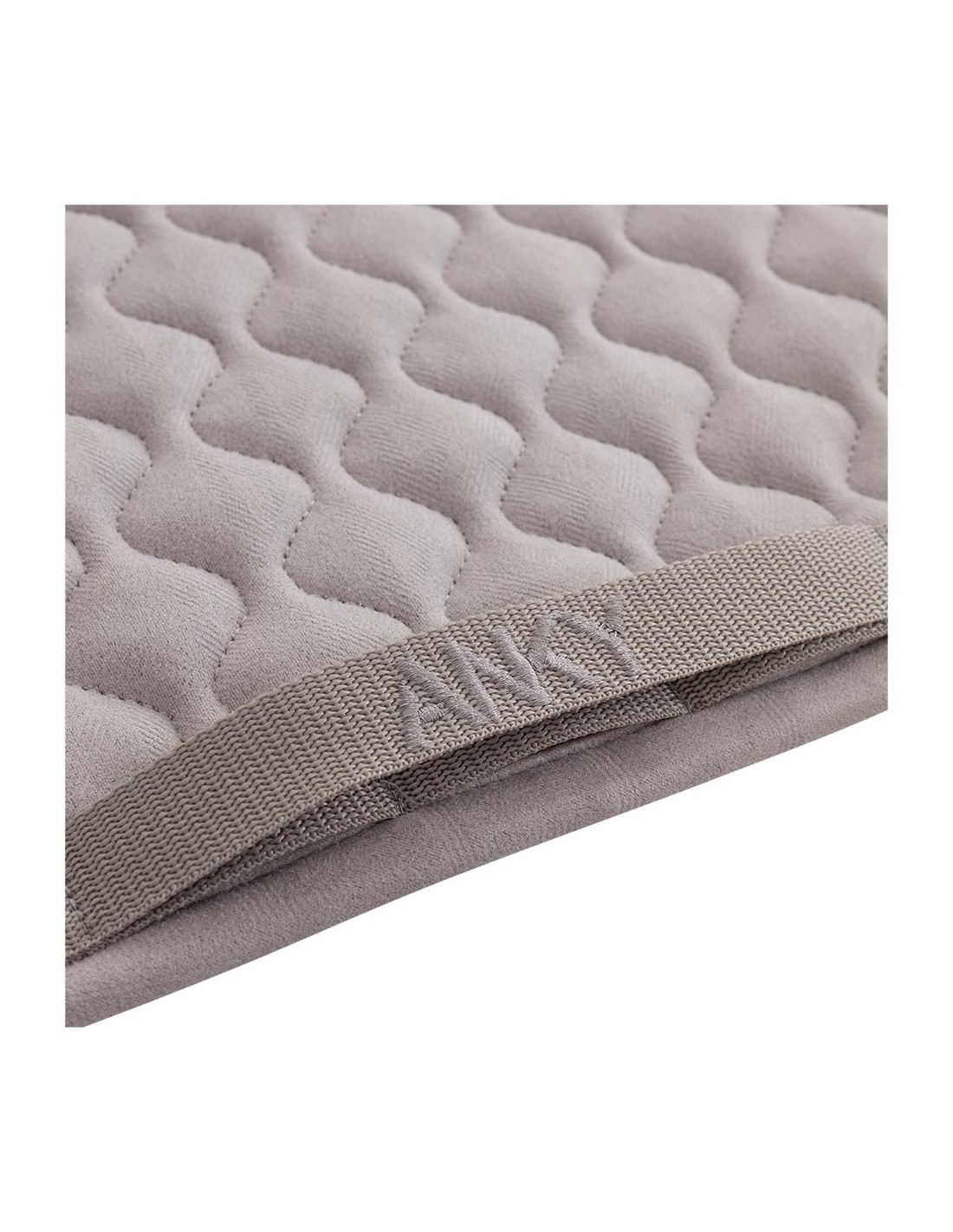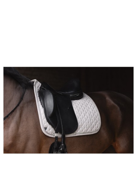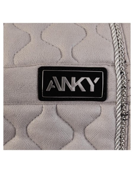 Dit elegante ANKY® zadeldek valt op door de zijdezachte buitenzijde met fijn reliëf en diamantvormige stepping. Daarnaast dragen ook de doorlopende koordbiezen, waarvan er eentje glanzend zilverkleurig is, bij aan het eye-catching effect van deze ANKY® pad.