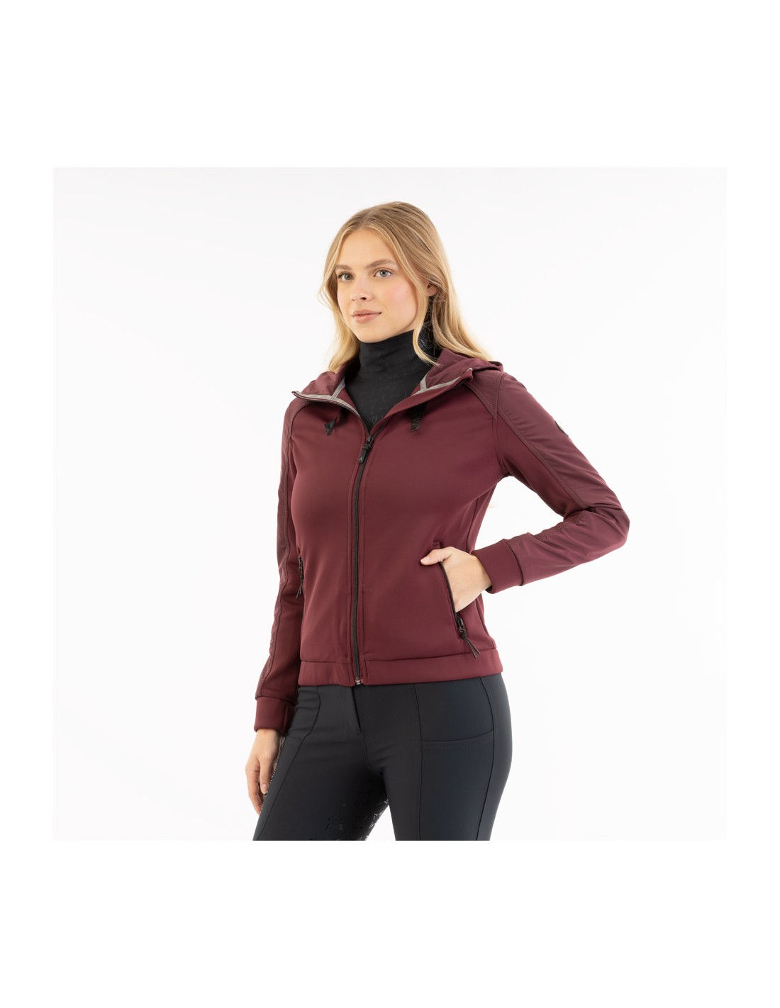 • Geweven, effen materiaal in een matchende kleurencombinatie op mouwen / voorzijde – achterzijde / capuchon