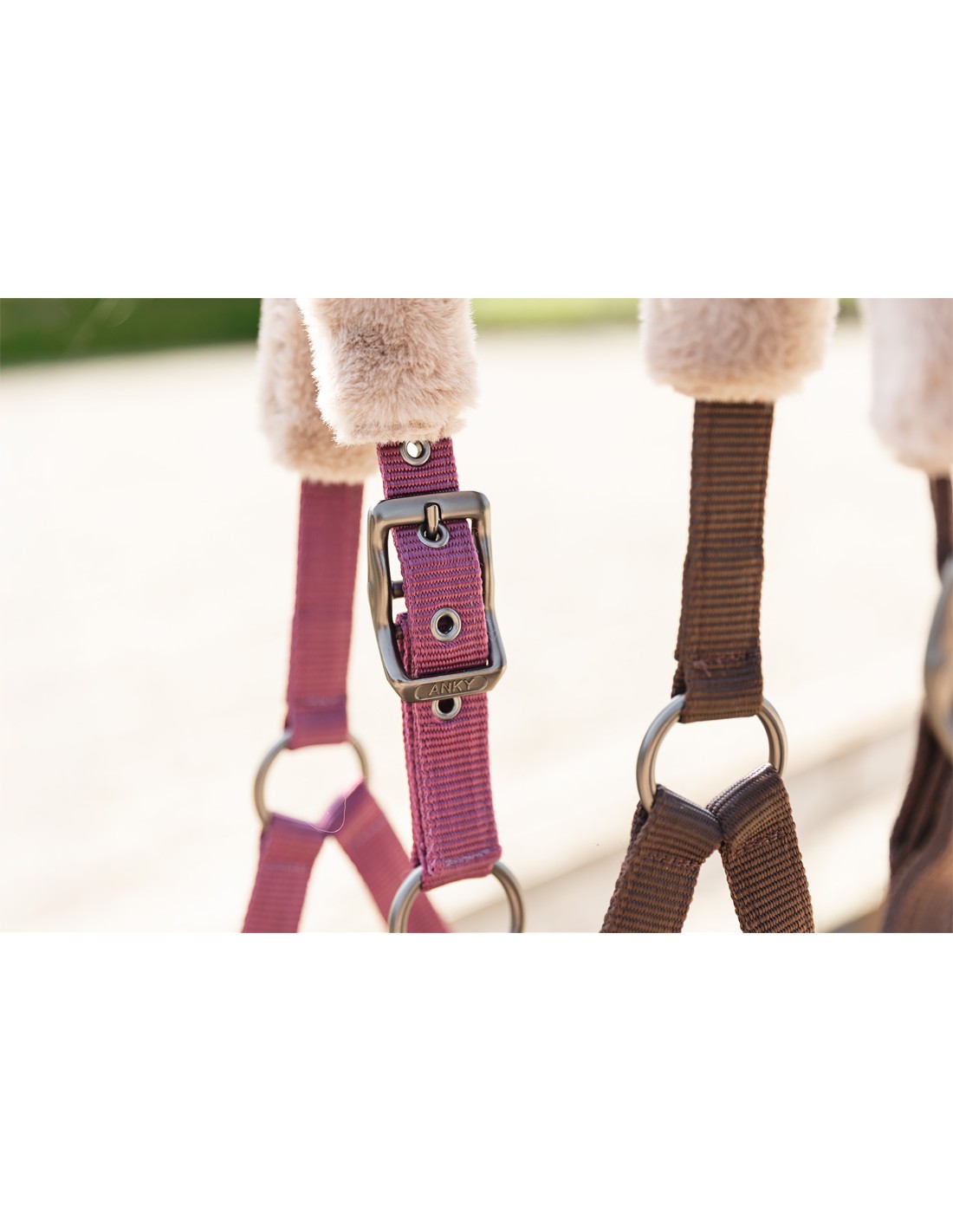 Dit luxe halster valt op door de taupekleurige bontvoering op het kopstuk en de neusriem. Het nepbont vermindert de druk op het paardenhoofd en voorkomt schuurplekken en frictie. Daarnaast is de voering afneembaar en wasbaar voor optimaal gebruiksgemak. Het bont droogt snel. Het halster is ideaal tijdens transport en om mee te nemen op wedstrijd voor optimaal comfort en een luxueuze look.