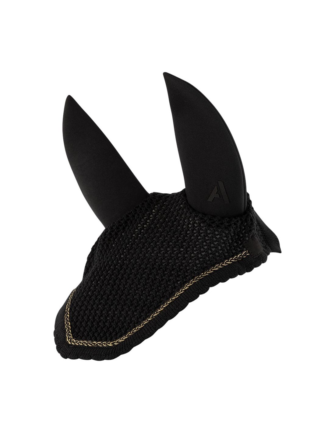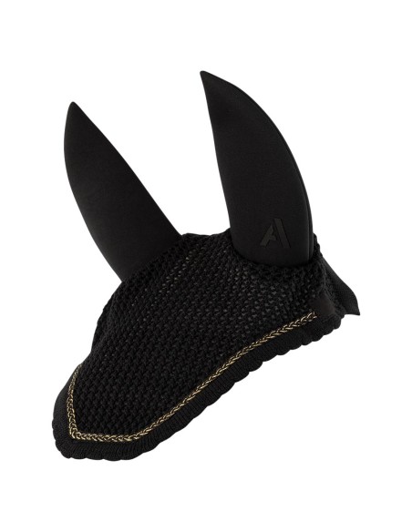 Dit praktische oornetje geeft een subtiele, chique look en biedt de oren van je paard optimale bescherming tegen vliegen en andere insecten. Het gehaakte deel zorgt voor een goede ventilatie. Het oornetje is elegant langs de rand afgewerkt met een goud/zwart-kleurige gevlochten bies. Maak de set voor je paard compleet met de ANKY® Dressage Pad Presence XB25005, artikel A16684..