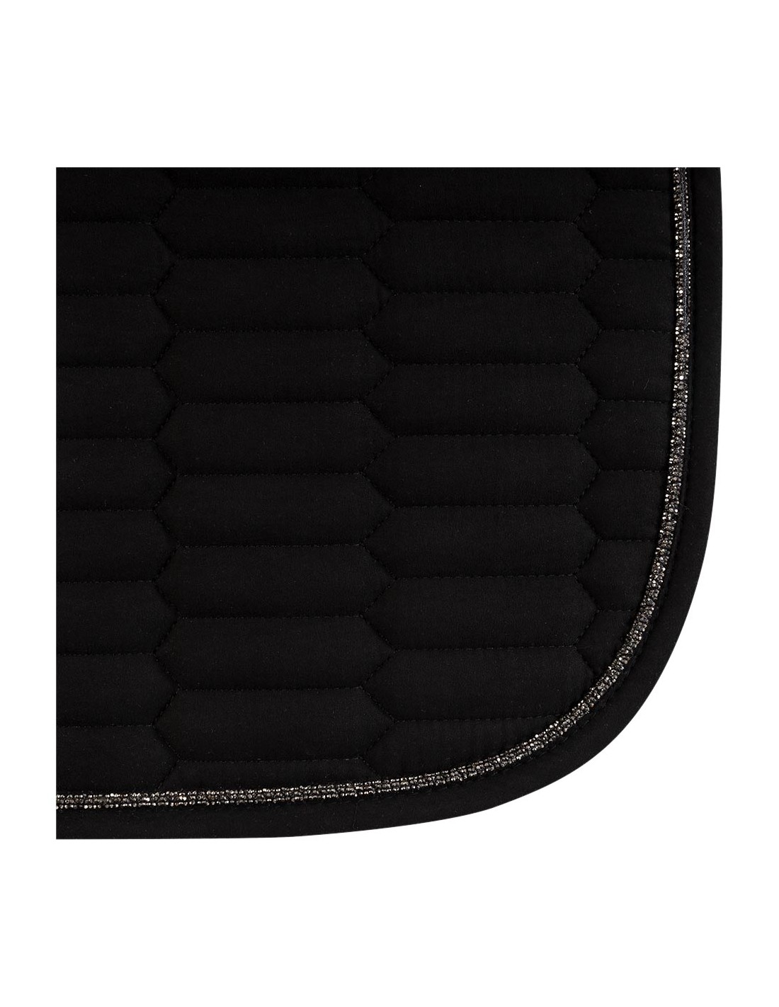 • Gunmetalkleurig koord van steentjes rondom de bies