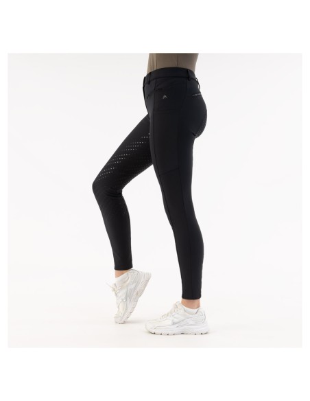• Logo van strass-steentjes op linkerbeen